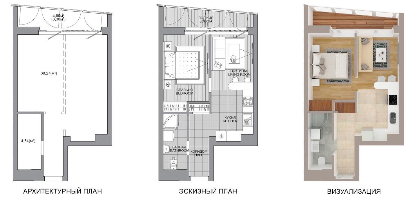 Жилая площадь 30.27 м²