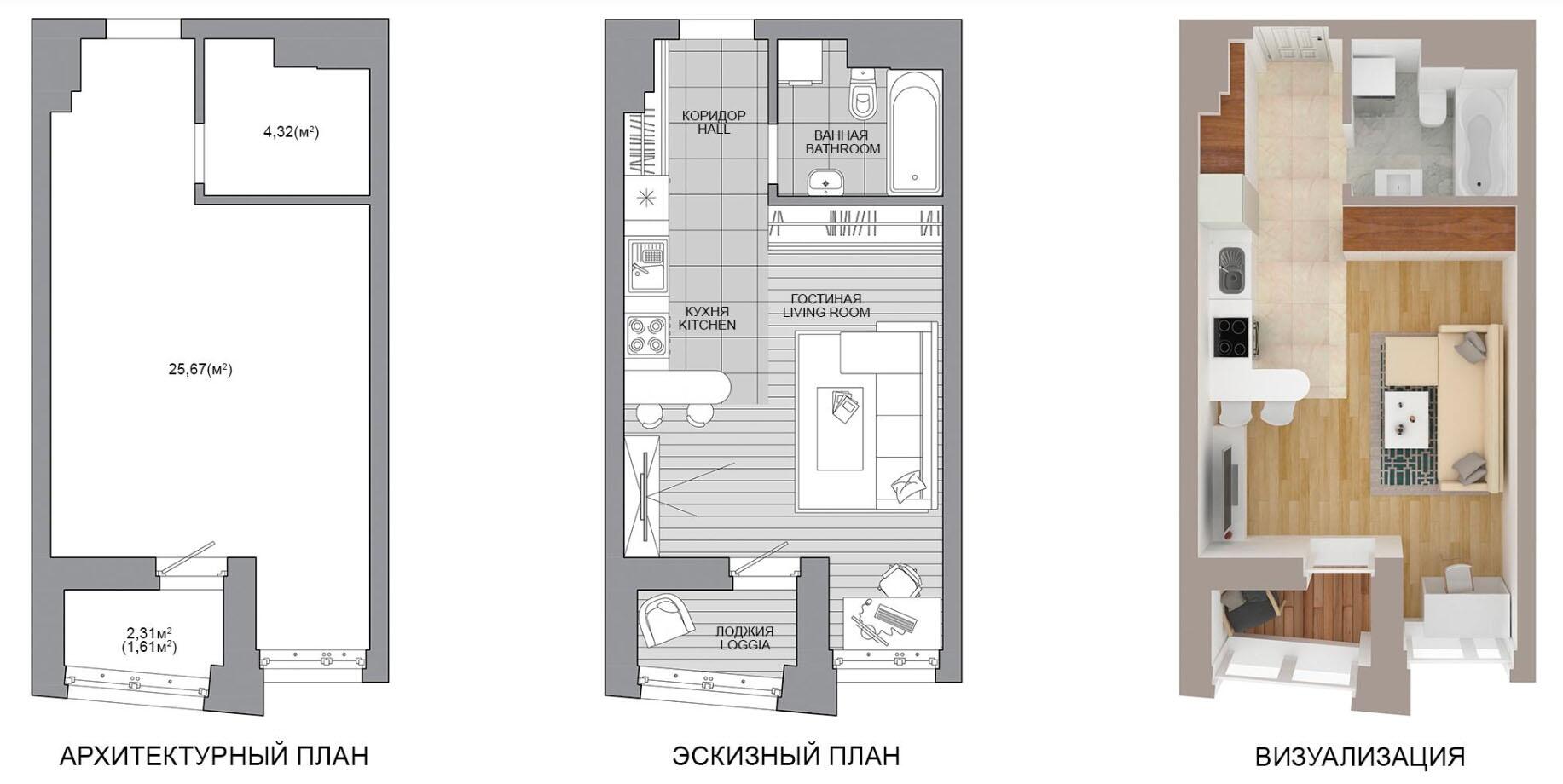 Жилая площадь 25.67 м²