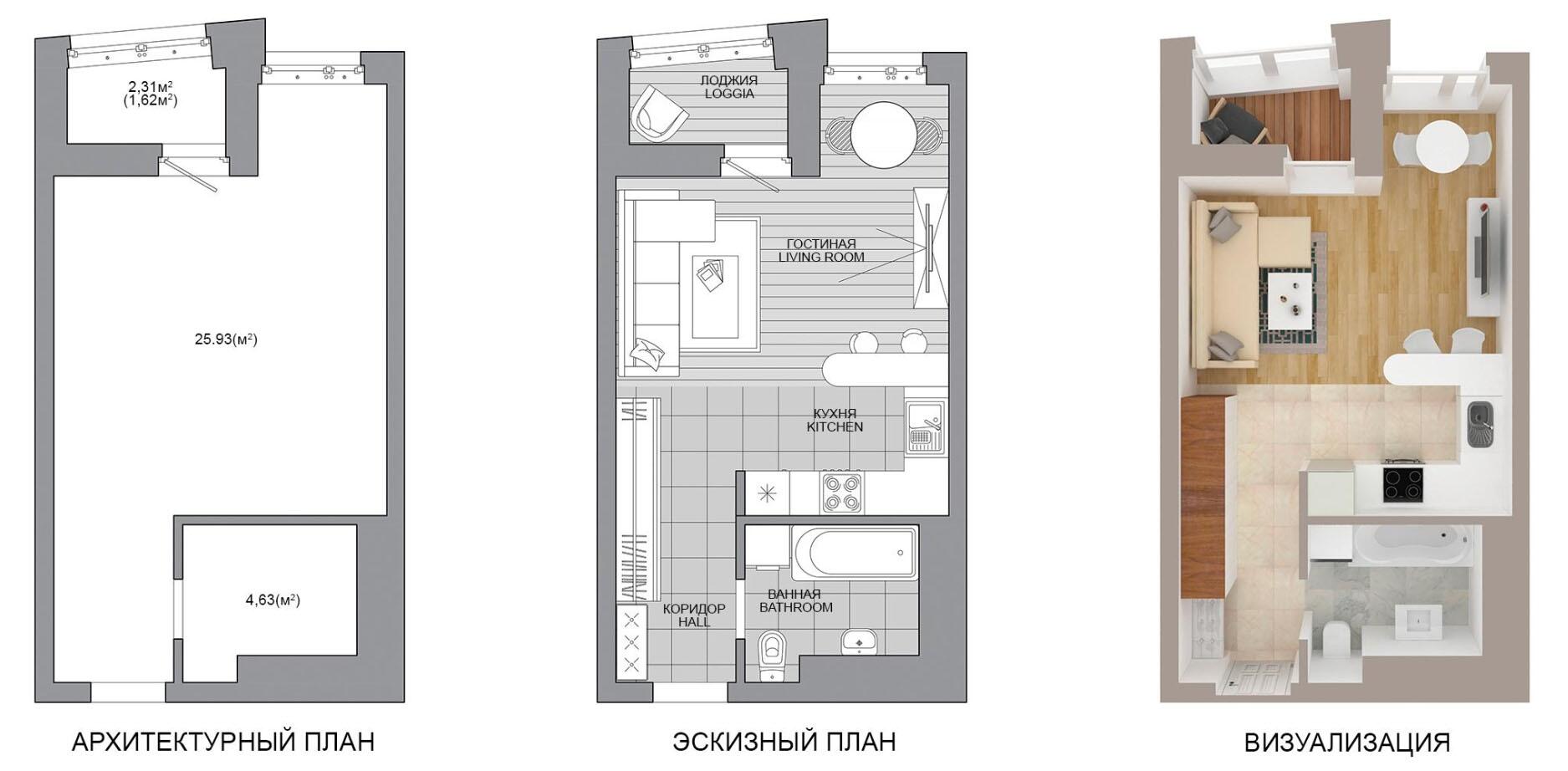 Жилая площадь 25.93 м²