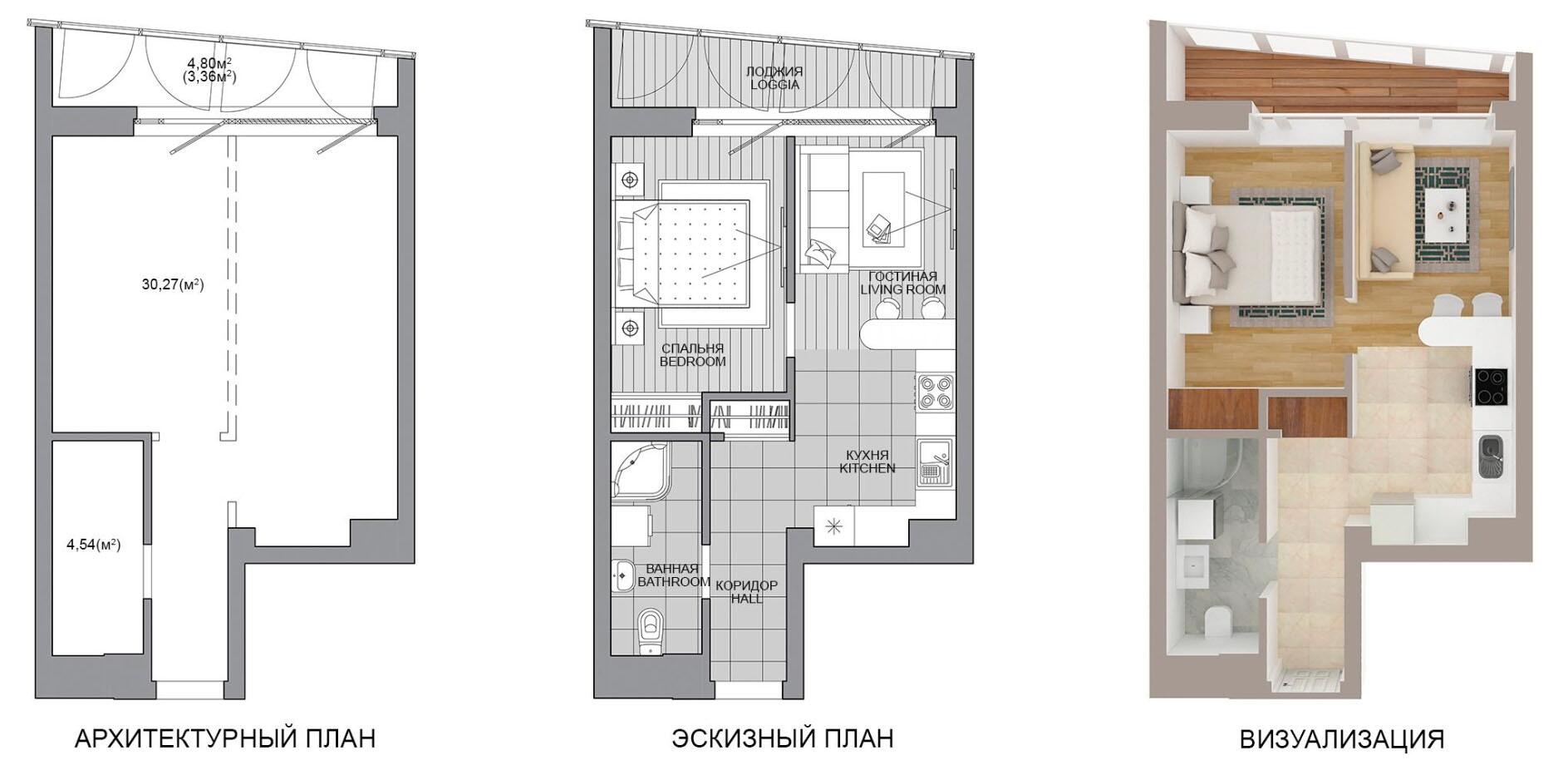 Жилая площадь 30.27 м²