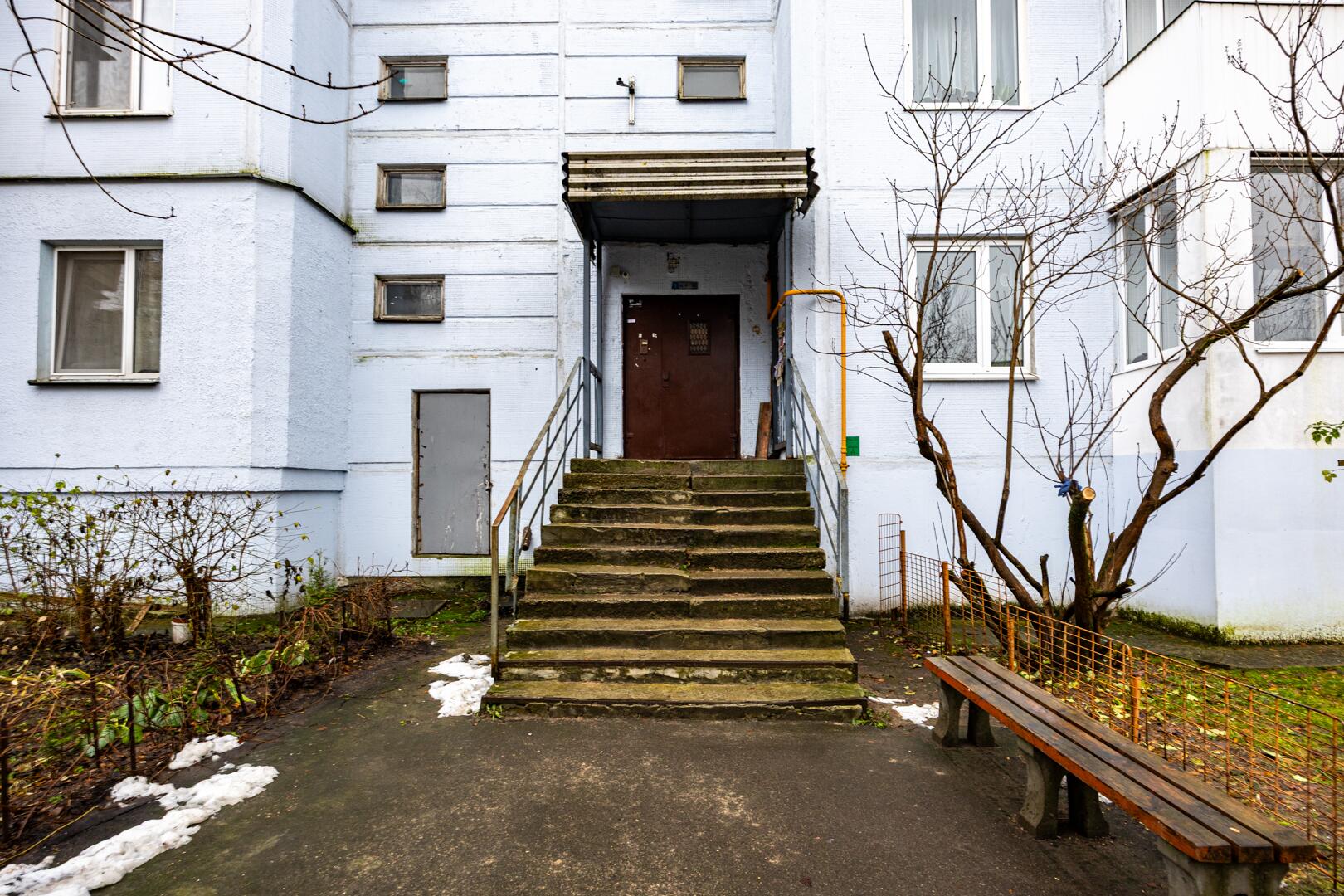 Панельный дом 1992 года постройки, ухоженный подъезд, большинство жильцов — офицеры.