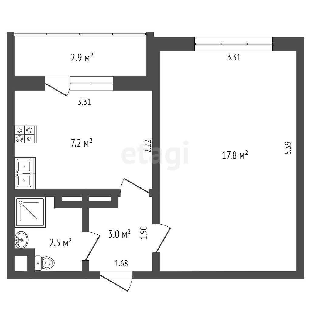 Просторная жилая комната (17,8кв.м), кухня – 7,2кв.м, выполнен хороший косметический ремонт. Сан.узел совмещённый – готов к воплощению ваших дизайнерских идей!