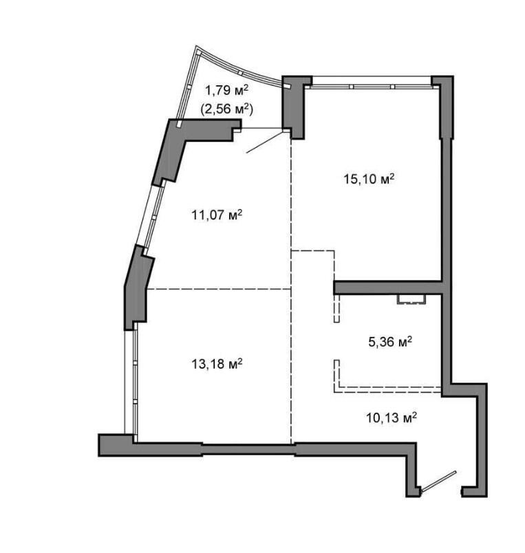 Общая площадь 55.6 м²