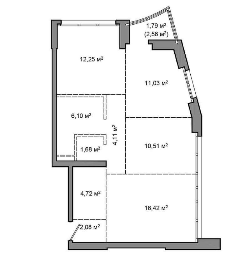 Жилая площадь 61.2 м²