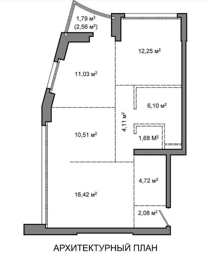 Жилая площадь 59 м²