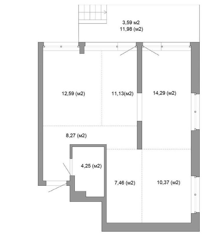 Высота потолков 2,7 м, а в некоторых домах на верхних этажах 3 м.