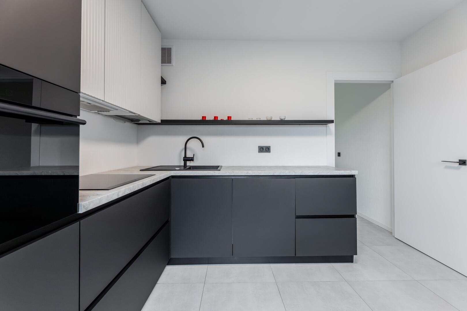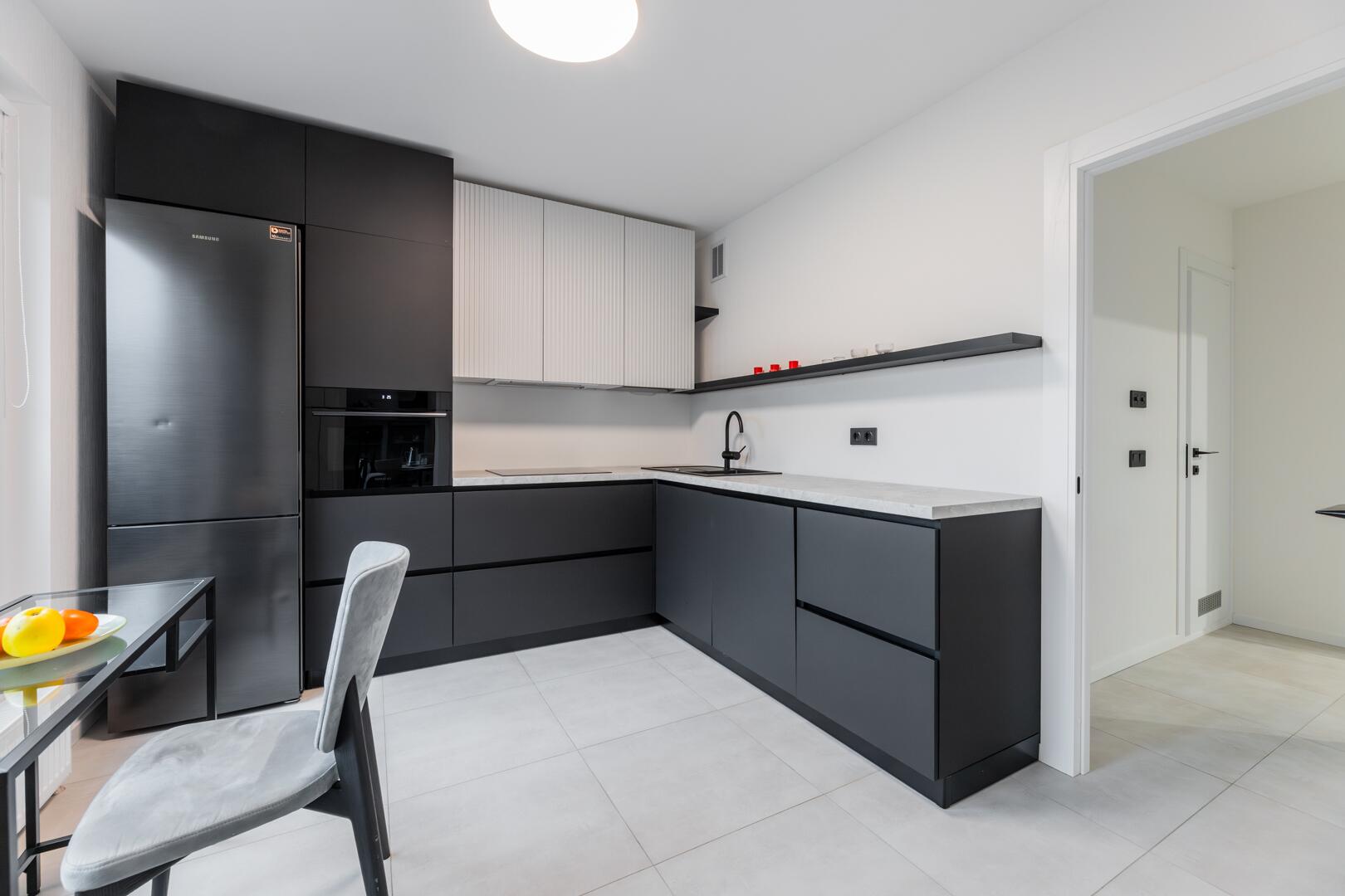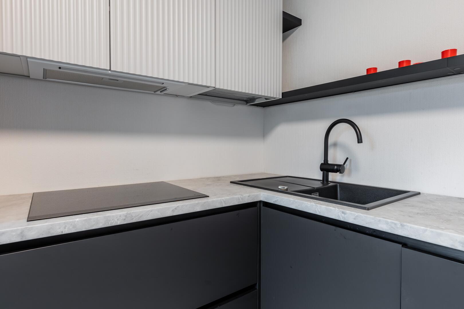 • Удобная встроенная кухня с бытовой техникой.