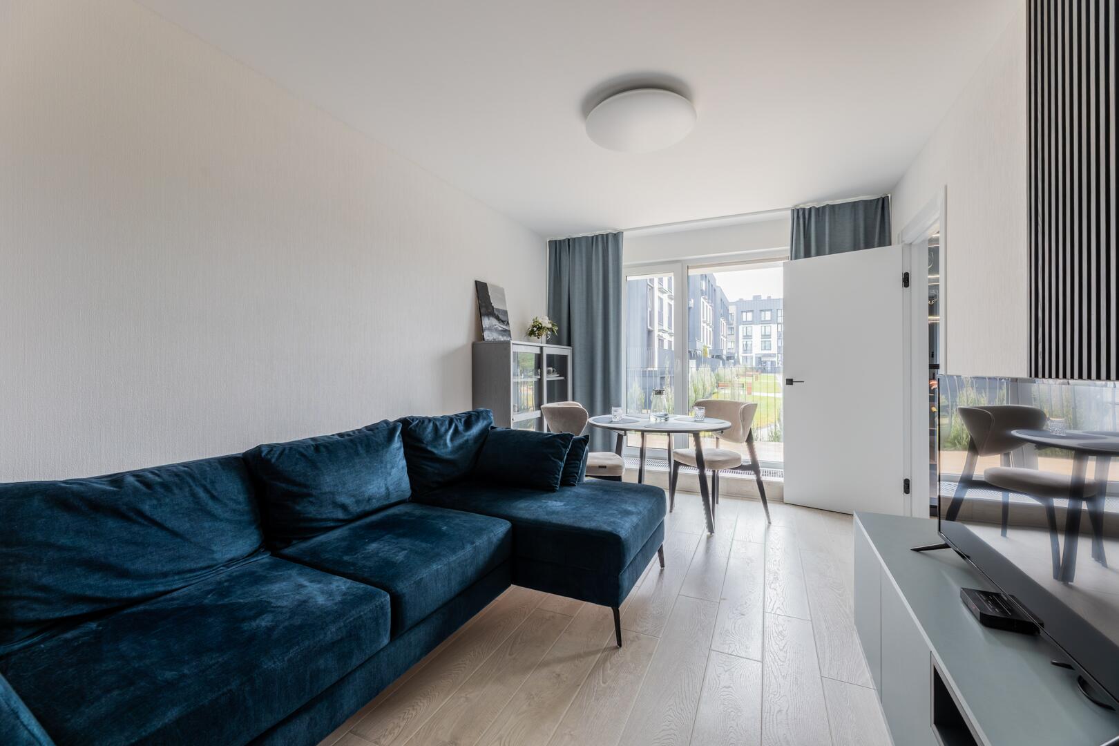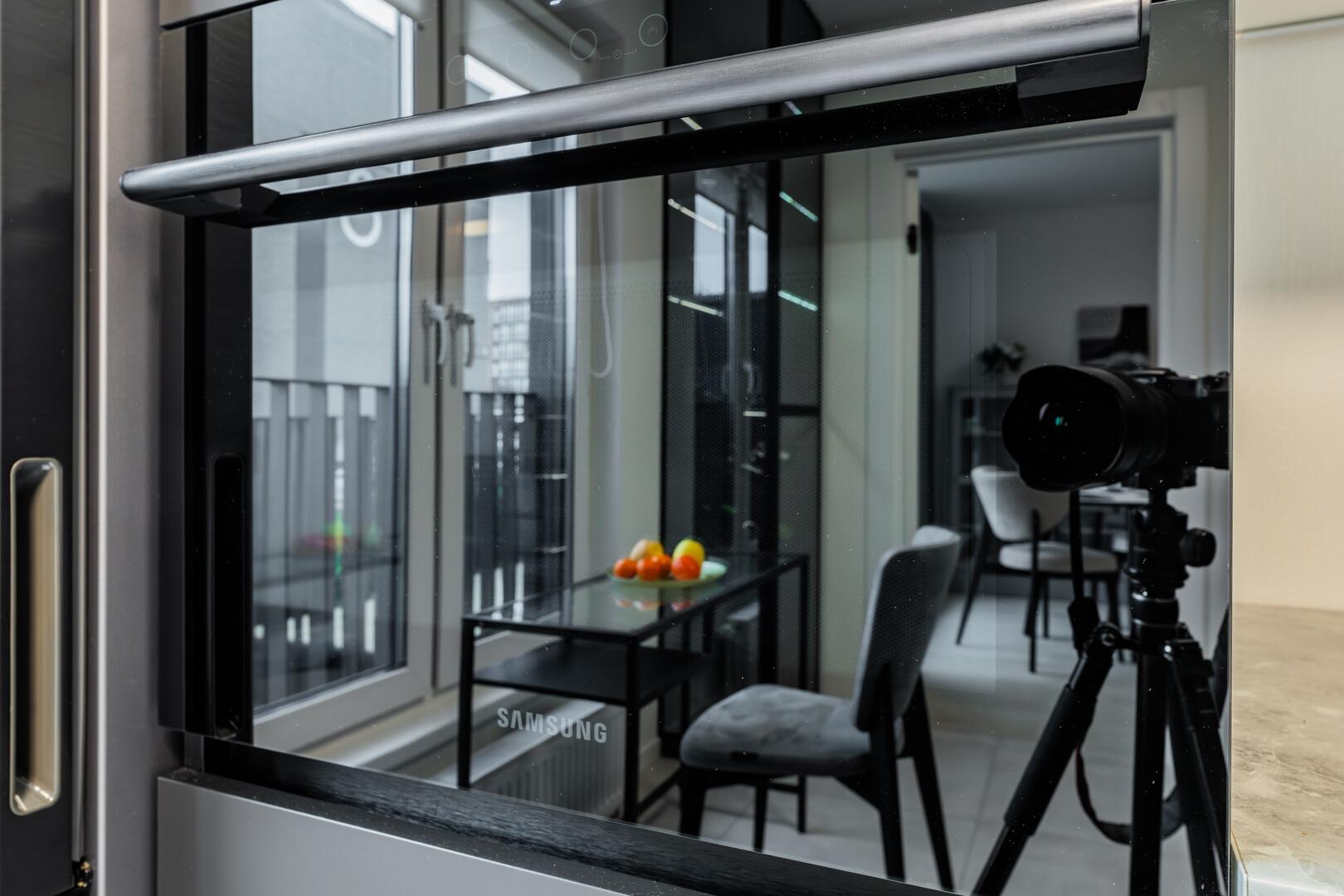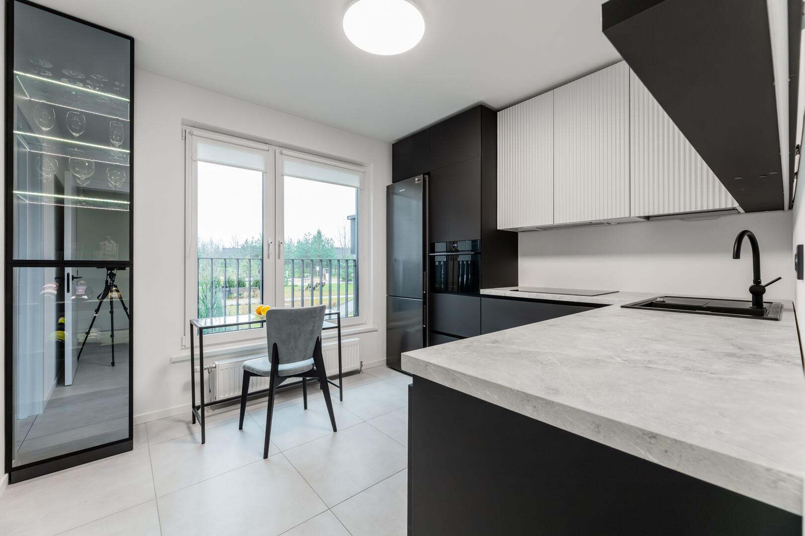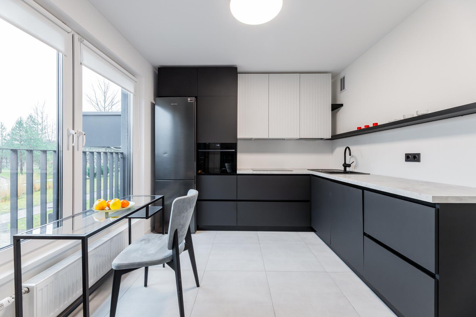 • Удобная встроенная кухня с бытовой техникой.