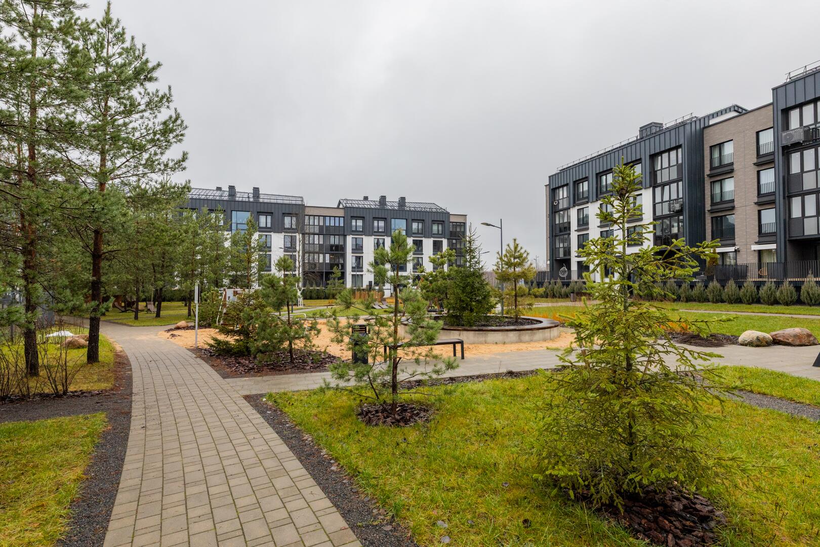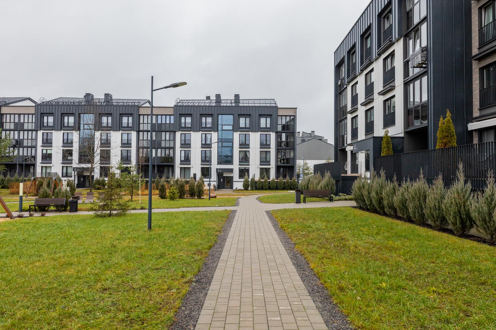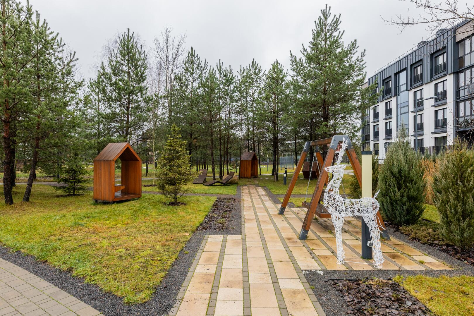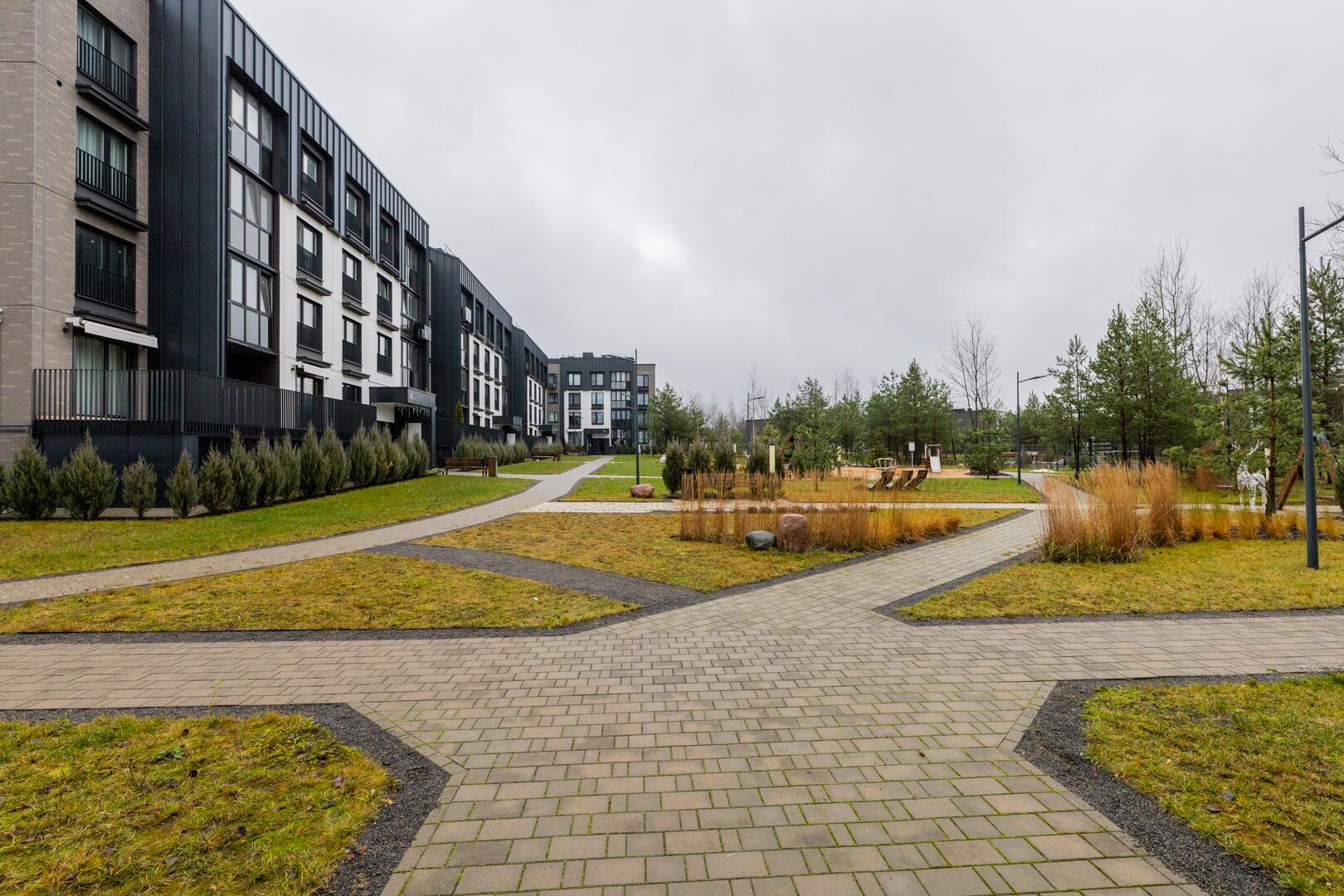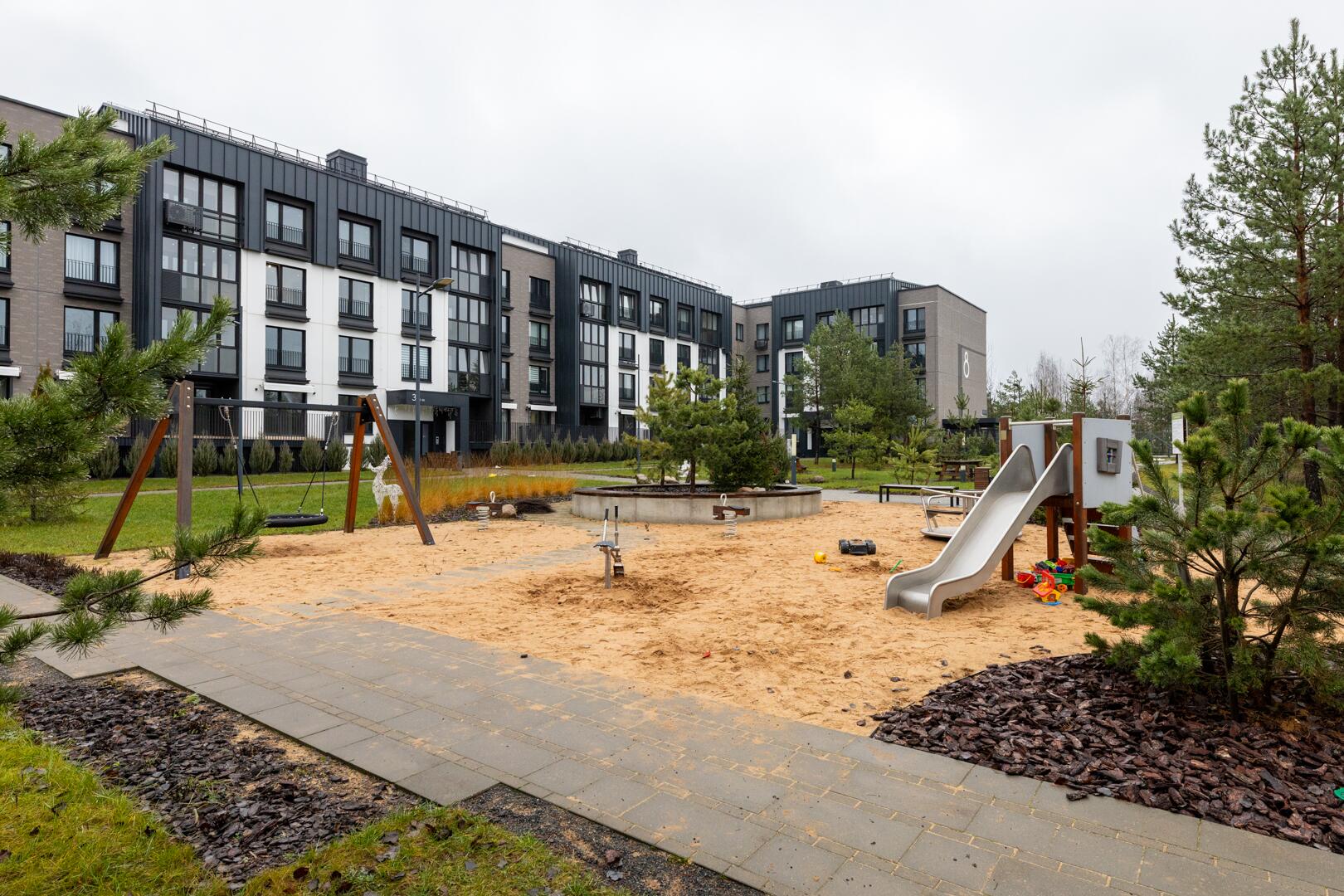 • Закрытая территория с детской площадкой и зонами отдыха.