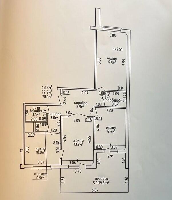 • Общая площадь: 72.2 м2