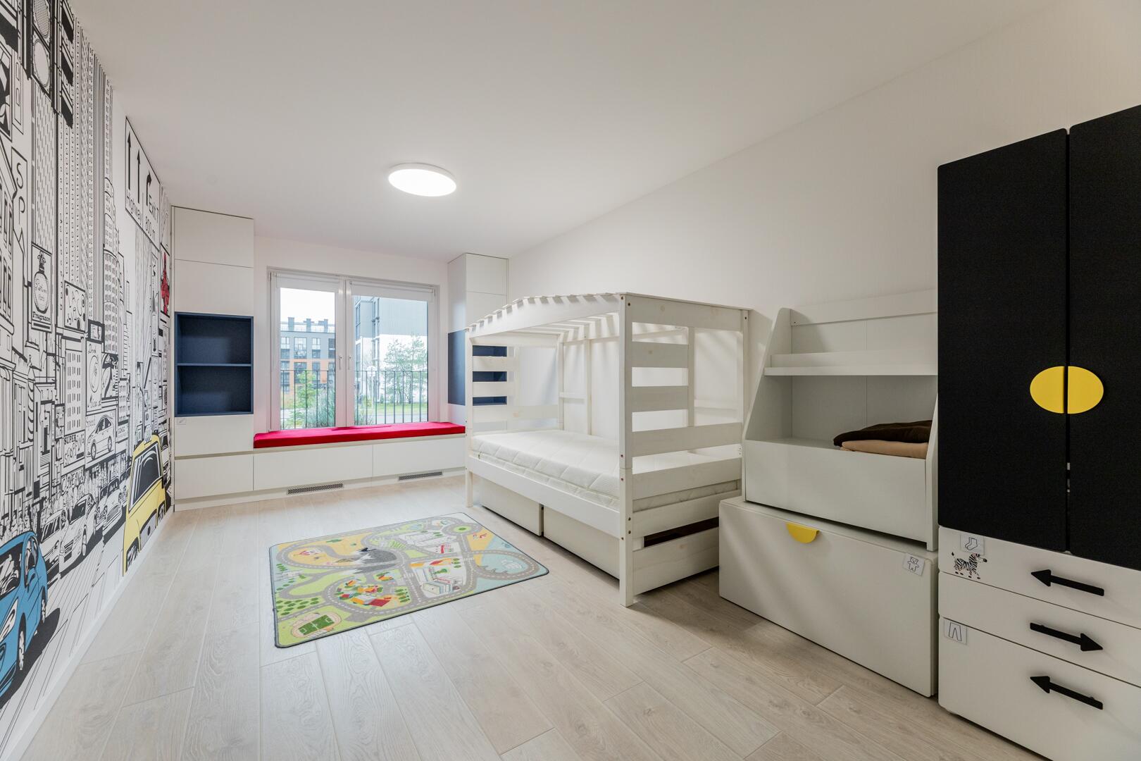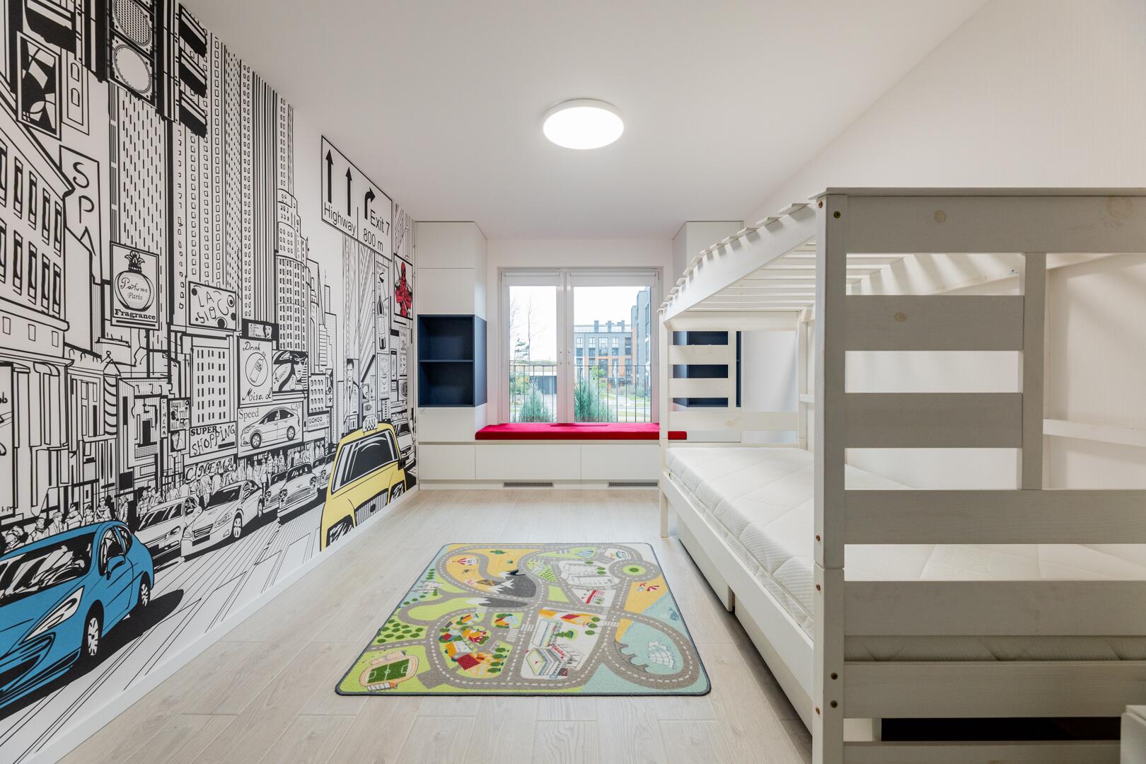 • Спальни: 17 м2, 12.4 м2 и 13.9 м2 (гостиная).