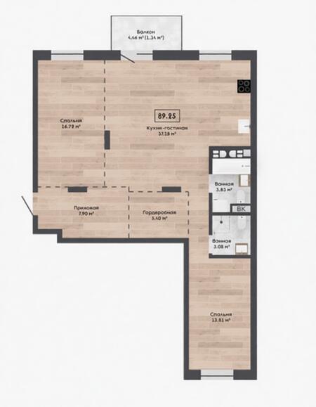Формат: евротрёшка - просторная кухня-гостиная + две авторские комнаты; состояние: без отделки, можно сделать ремонт под себя; Рассрочка от застройщика