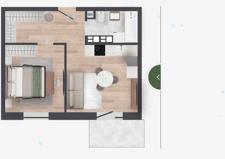 Продуманные планировки: Уникальные квартиры с личными террасами и участками на первом этаже, а также квартиры с мастер-спальнями, гардеробными и кабинетом. Кроме того, для каждой квартиры предусмотрена кладовая в техническом подполье, а для некоторых — кладовые на этажах.