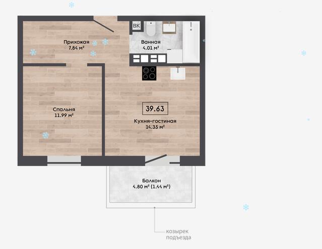 Площадь39.63 м2