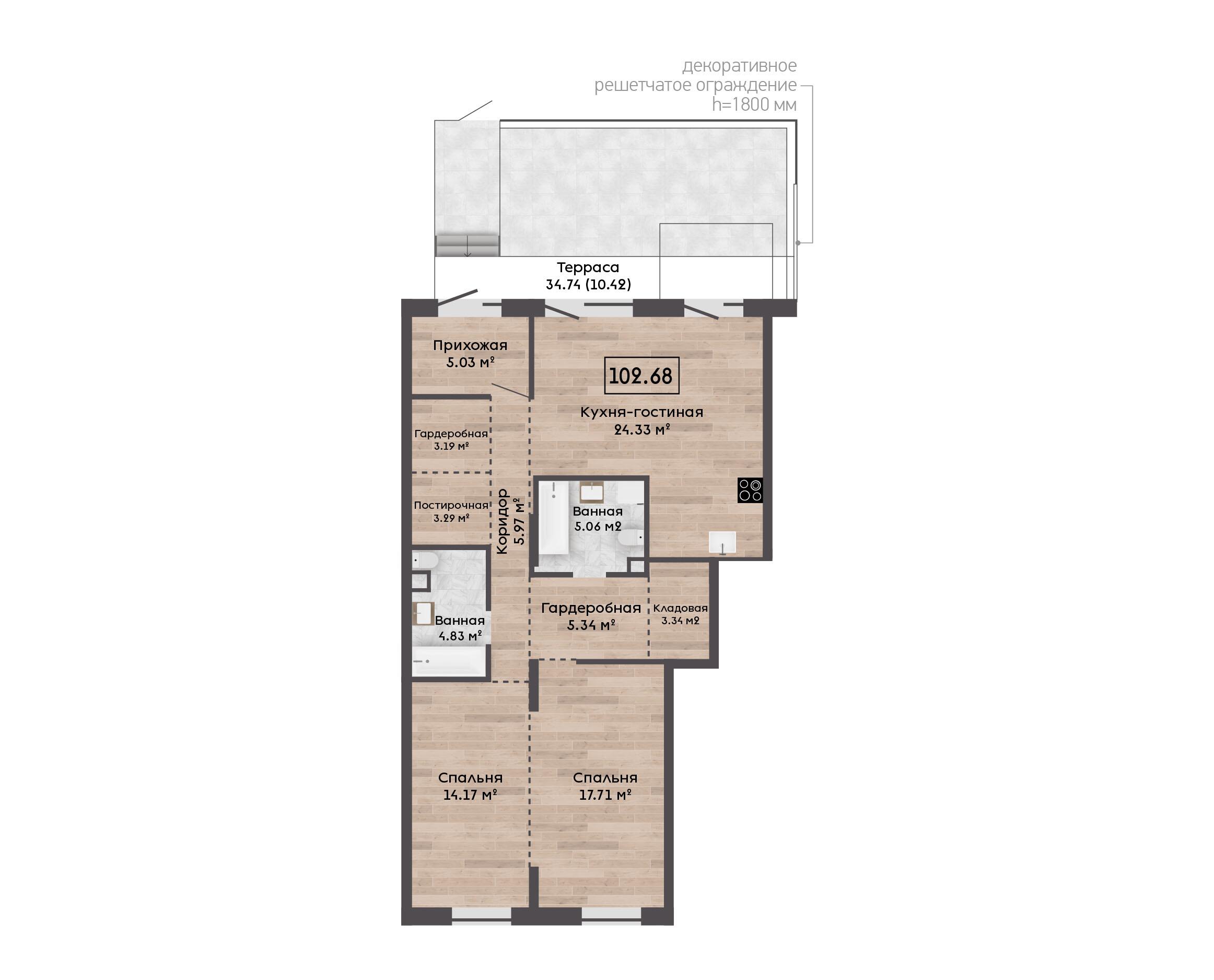 - Без отделки.- Высота потолков: 2,72 м.- Оконные проёмы с низкой подоконной частью: 500 мм.- Терраса. Участок приподнят на 0,5 метра над уровнем территории двора и обнесен металлическим ограждением.- Обязательная покупка при приобретении квартиры - машино-место. Доступно в паркинге, в т.ч. места с ЭЗС. Не входит в стоимость квартиры.