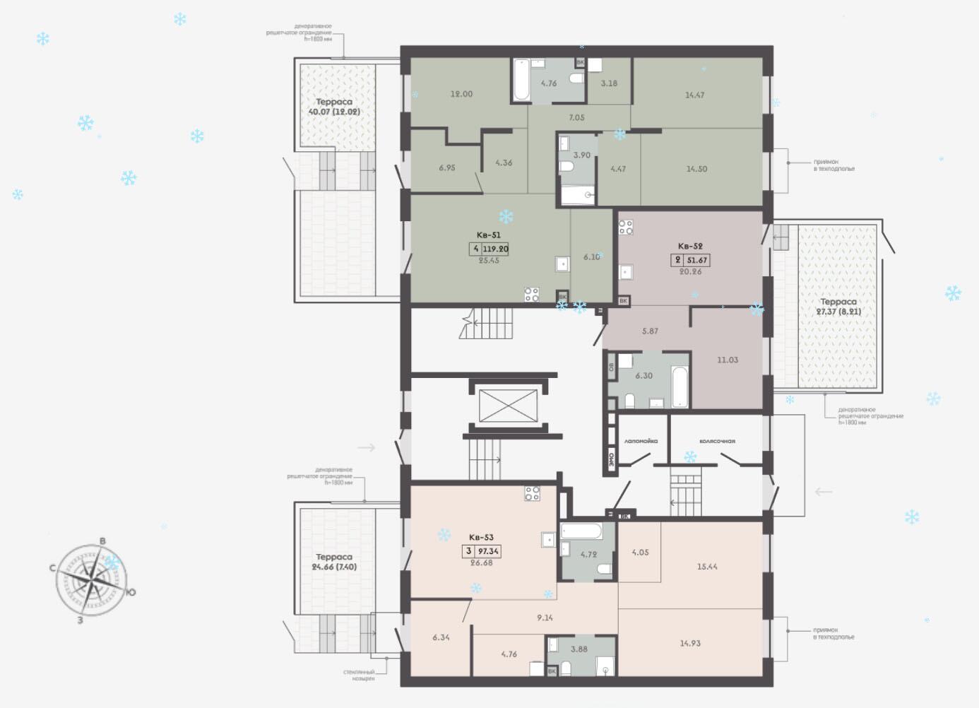 - Безбарьерный вход.- Помещение для мытья лап домашних животных.- Комната для хранения колясок.- Видеодомофон и продуманная навигация.- Чат-доска для соседей, полки для book-crossing.- Почтовые ящики со спам-отделением.