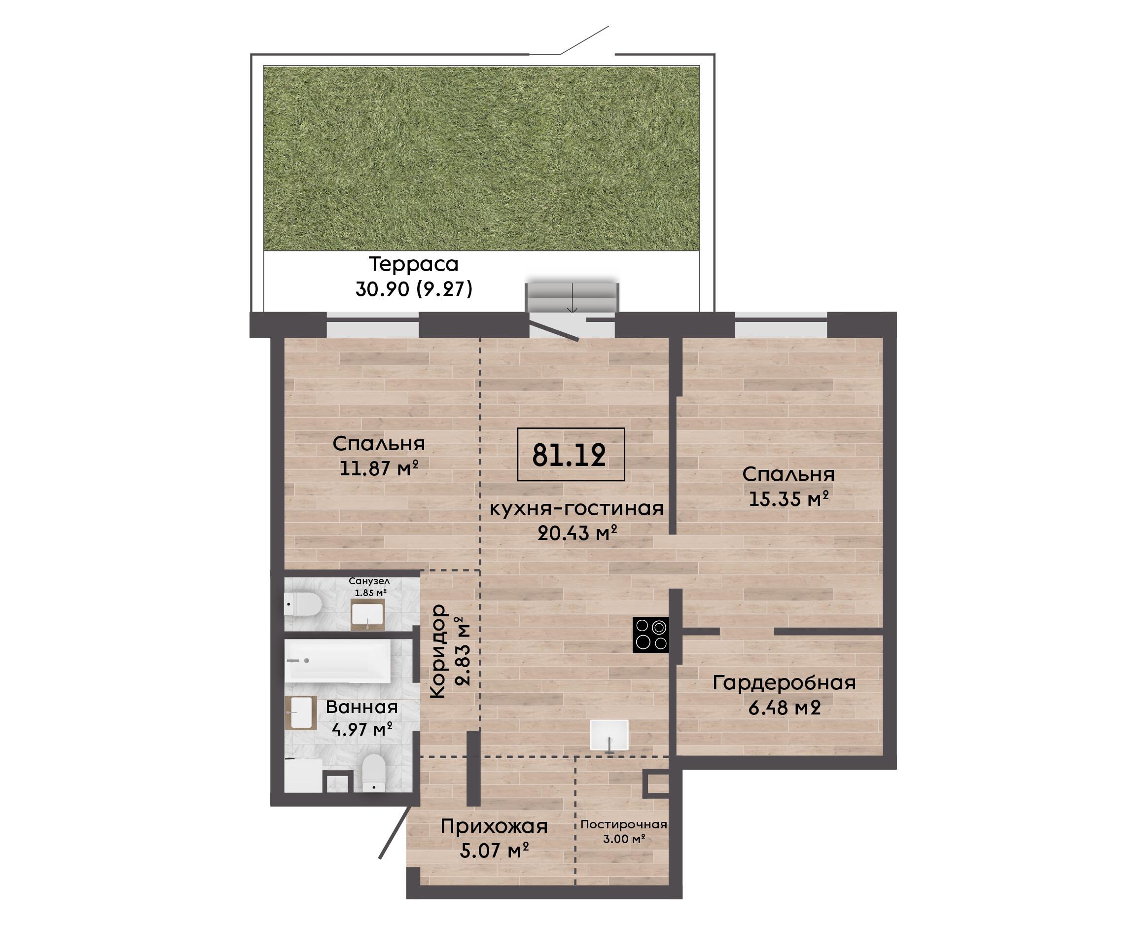 - Без отделки.- Высота потолков: 2,72 м.- Оконные проёмы с низкой подоконной частью: 500 мм.- Терраса. Участок приподнят на 0,5 метра над уровнем территории двора и обнесен металлическим ограждением.- Обязательная покупка при приобретении квартиры - машино-место. Доступно в паркинге, в т.ч. места с ЭЗС. Не входит в стоимость квартиры.