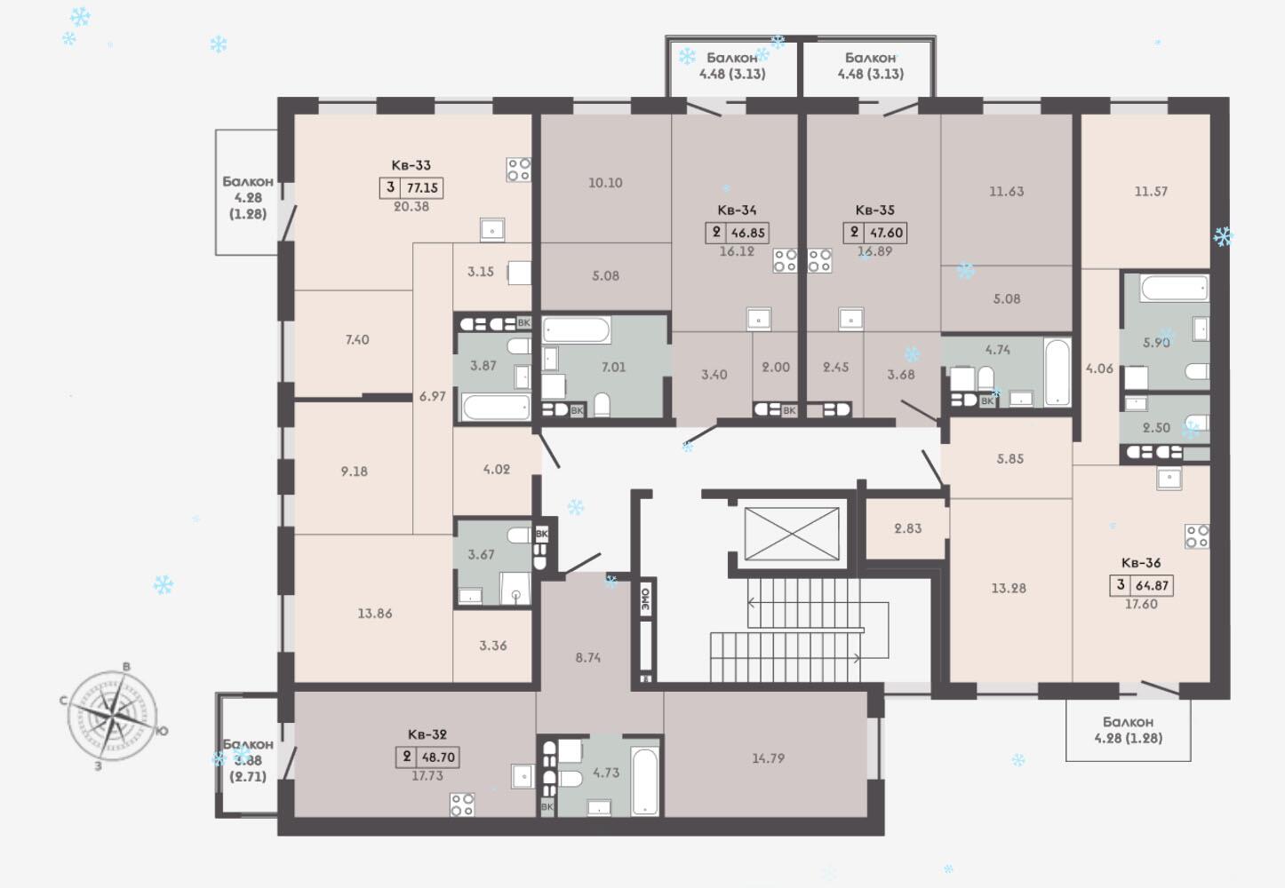 Площадь48.7 м2
