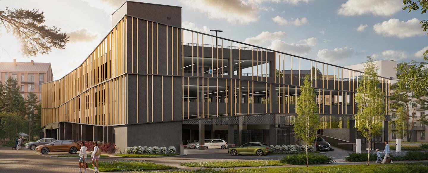Будет создано из сохранённых лесных деревьев, к которым в дополнение будут высажены кустарники и многолетние травы.