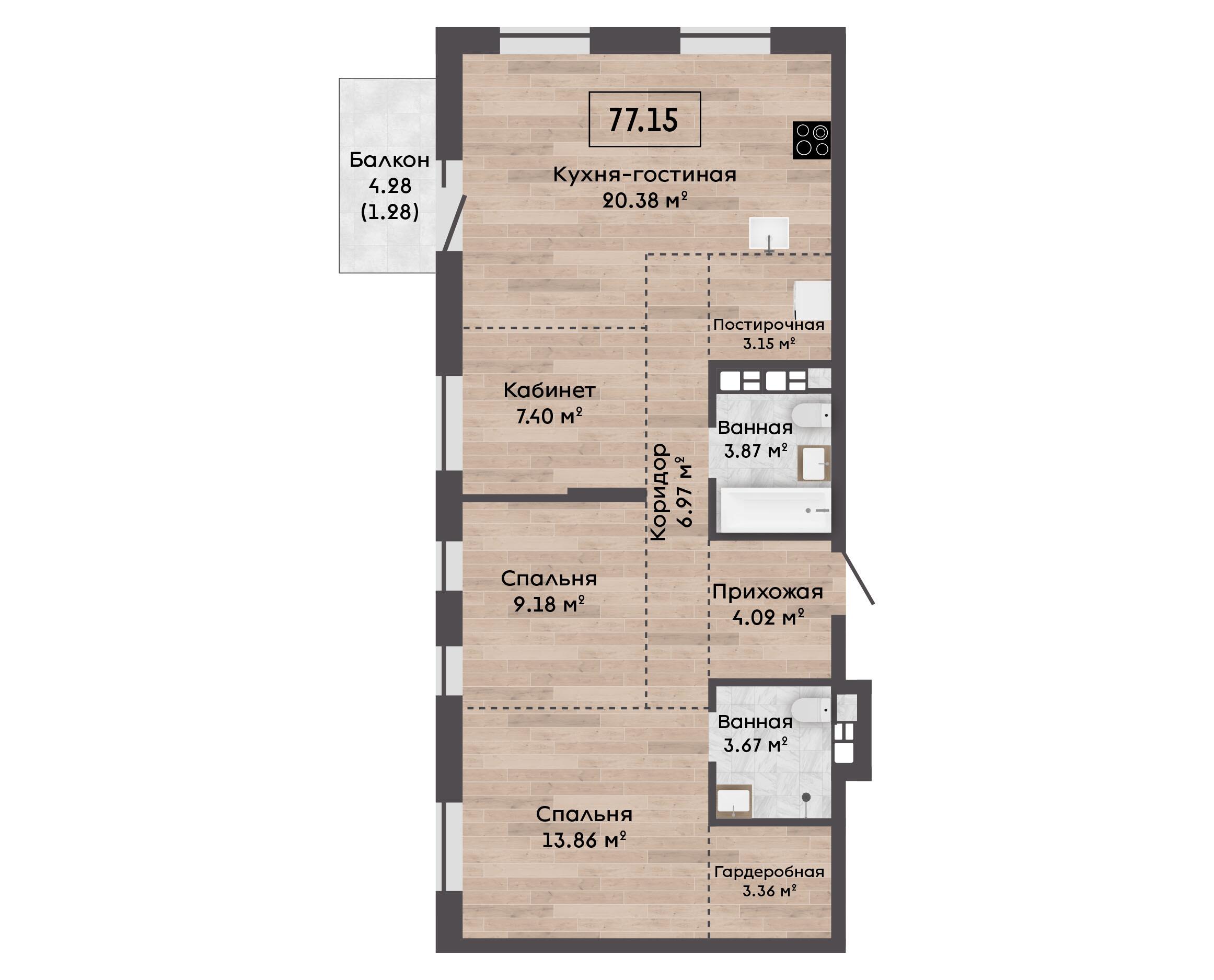 3-комнатная квартира с современной планировкой в ЖК «Зелёная Гавань» в новом Ситихаус 6.11 по цене застройщика без комиссии - идеальный вариант для комфортной жизни рядом с природой и всей необходимой инфраструктурой.