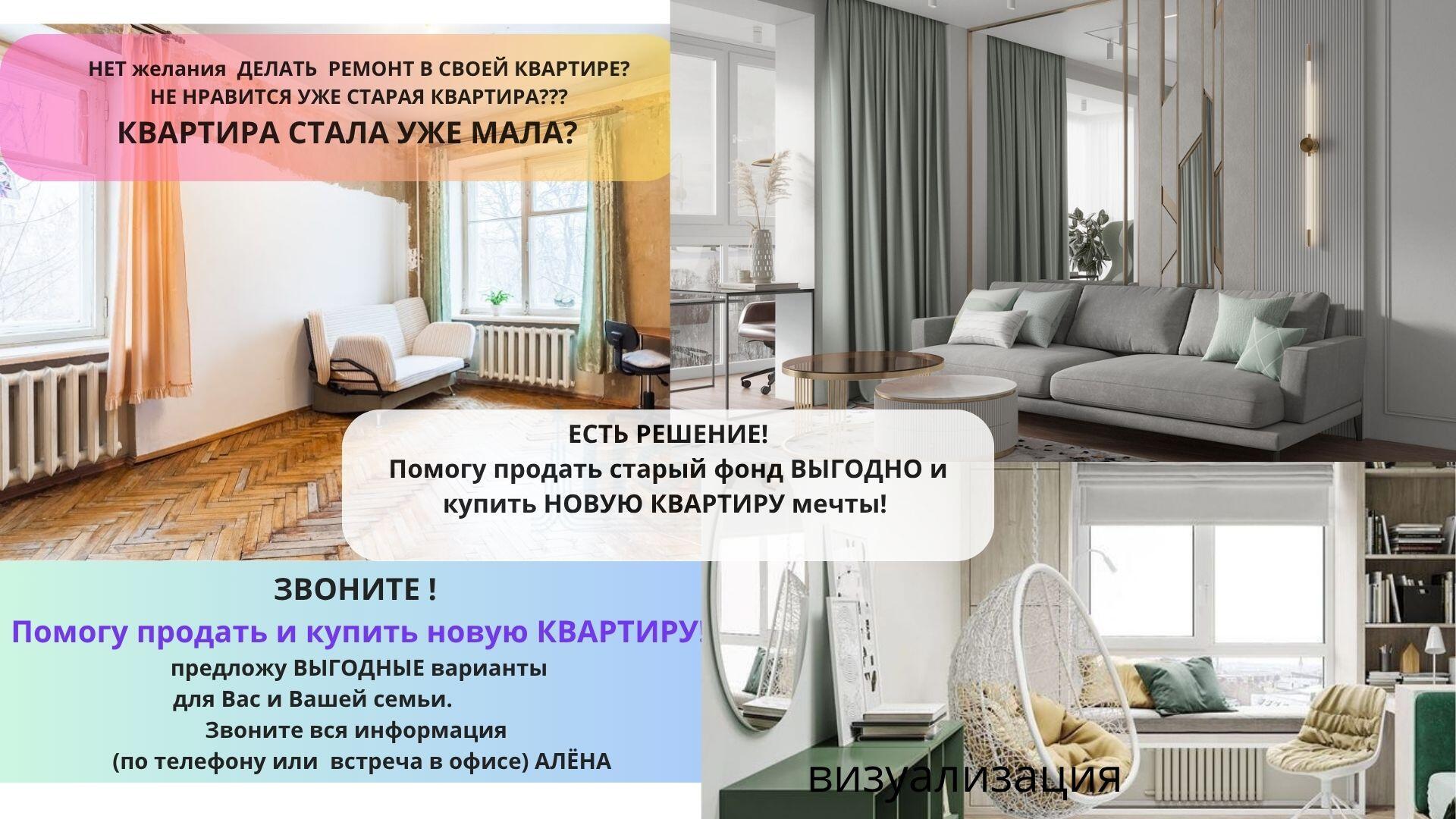 Меняйте старое на новое. Бесплатная оценка вашей квартиры уже сегодня! Звоните. Алёна.