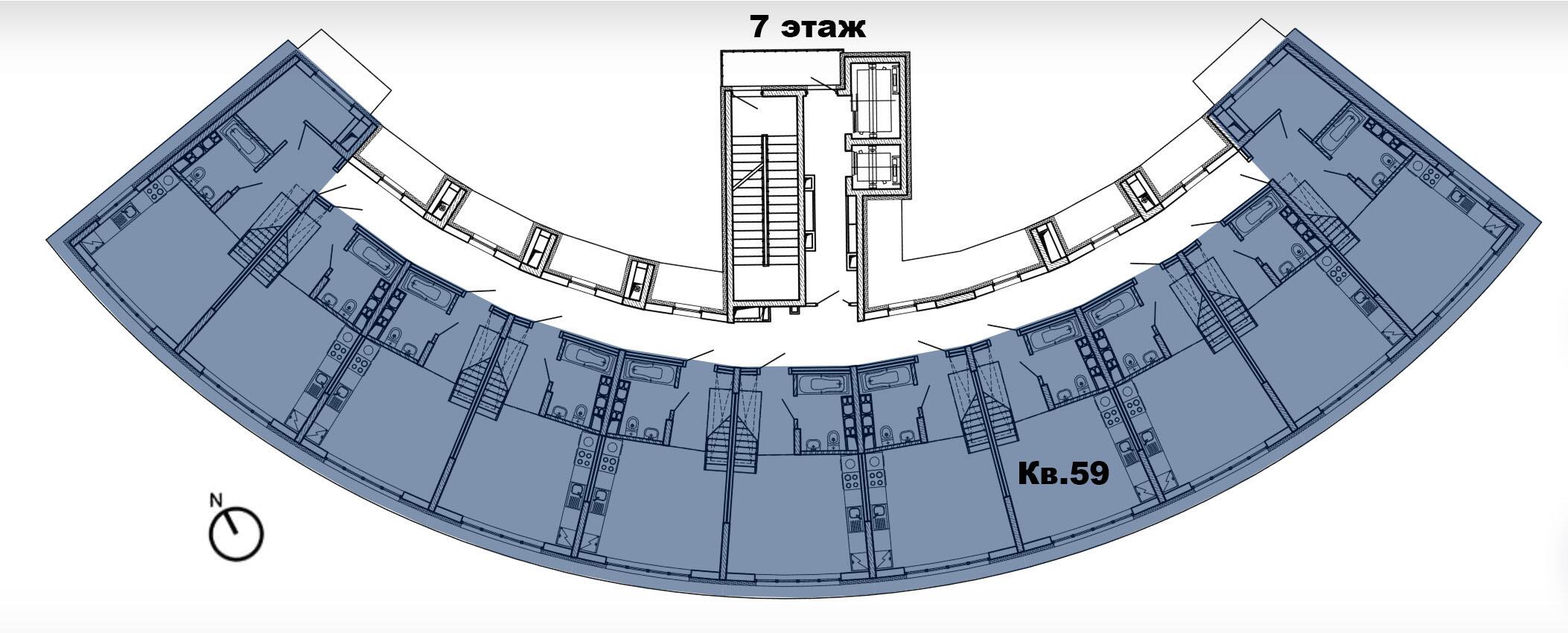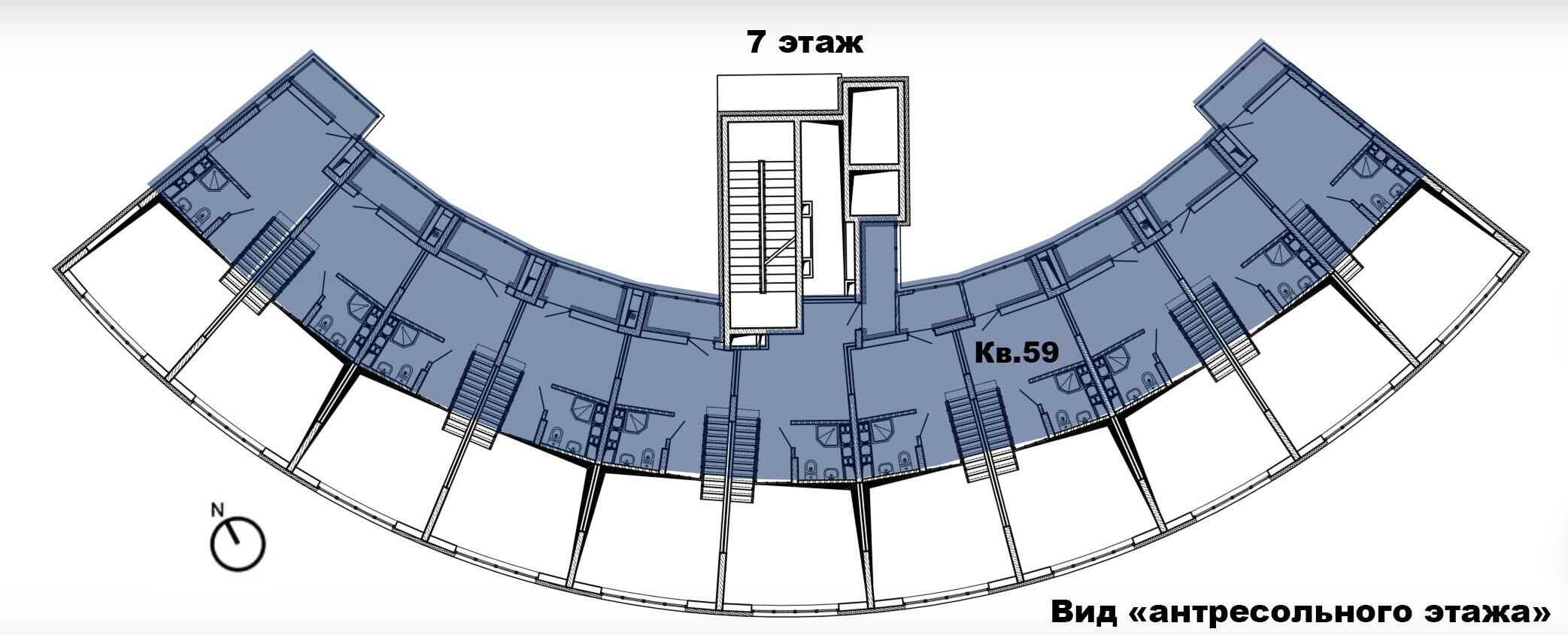 8 этажей. Всего 77 эксклюзивных квартир. Дугообразная архитектура, панорамное остекление 4,4 × 3 м. Фасад в бело-синих «природных» оттенках. Безбарьерные входы, предусмотрены пандусы.