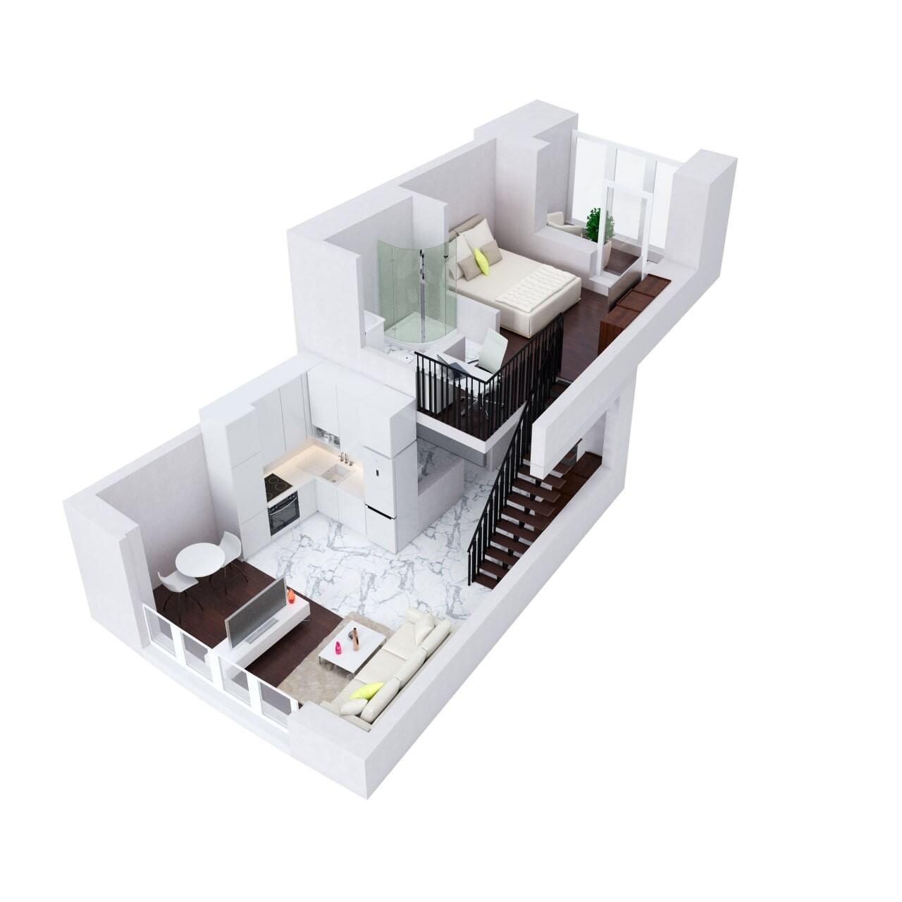 Свободные планировки, возможность индивидуального зонирования. Высота потолков до 5,1 м. Антресольный этаж (до 40% площади) - идеален под спальню, кабинет, санузел. Два санузла. На верхнем уровне - выход на остеклённый балкон повышенной высоты. В торцевых квартирах дополнительно: жилая комната + окно в кухне. Панорамные окна с видом на парк.