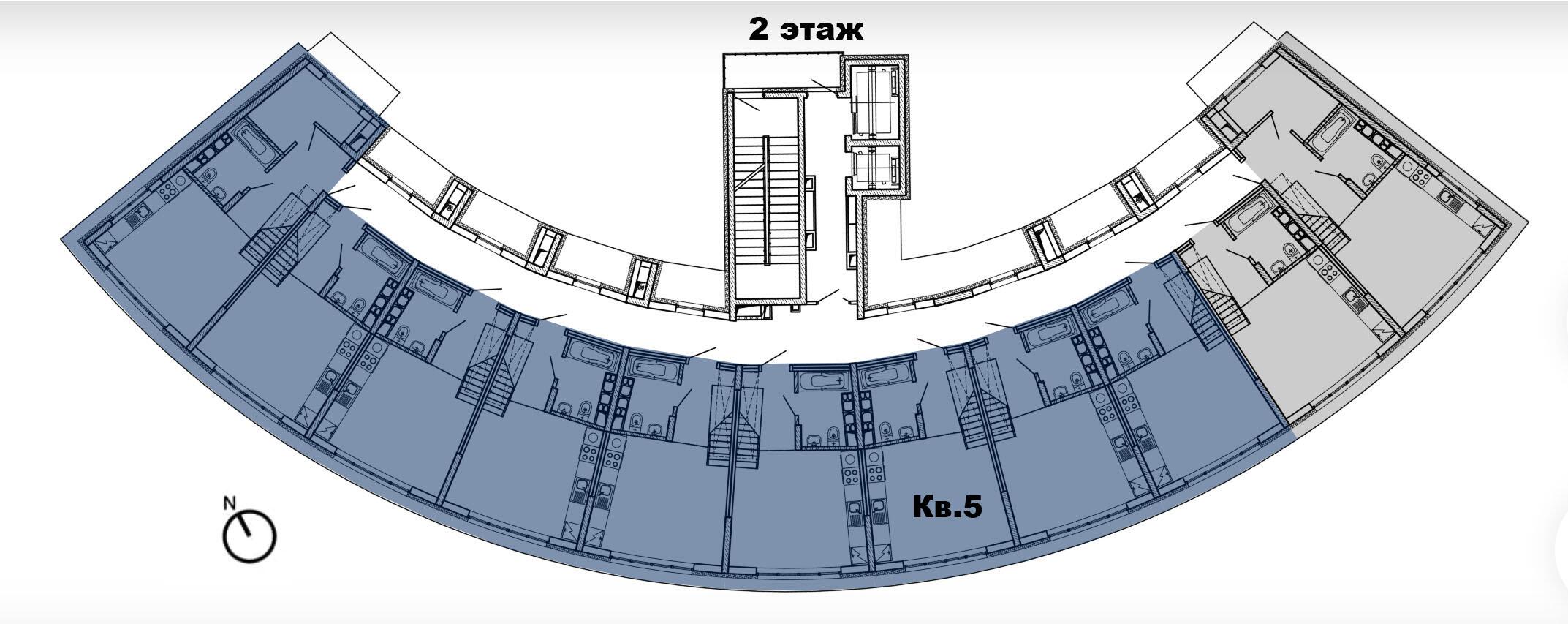 8 этажей. Всего 77 эксклюзивных квартир. Дугообразная архитектура, панорамное остекление 4,4 × 3 м. Фасад в бело-синих «природных» оттенках. Безбарьерные входы, предусмотрены пандусы.