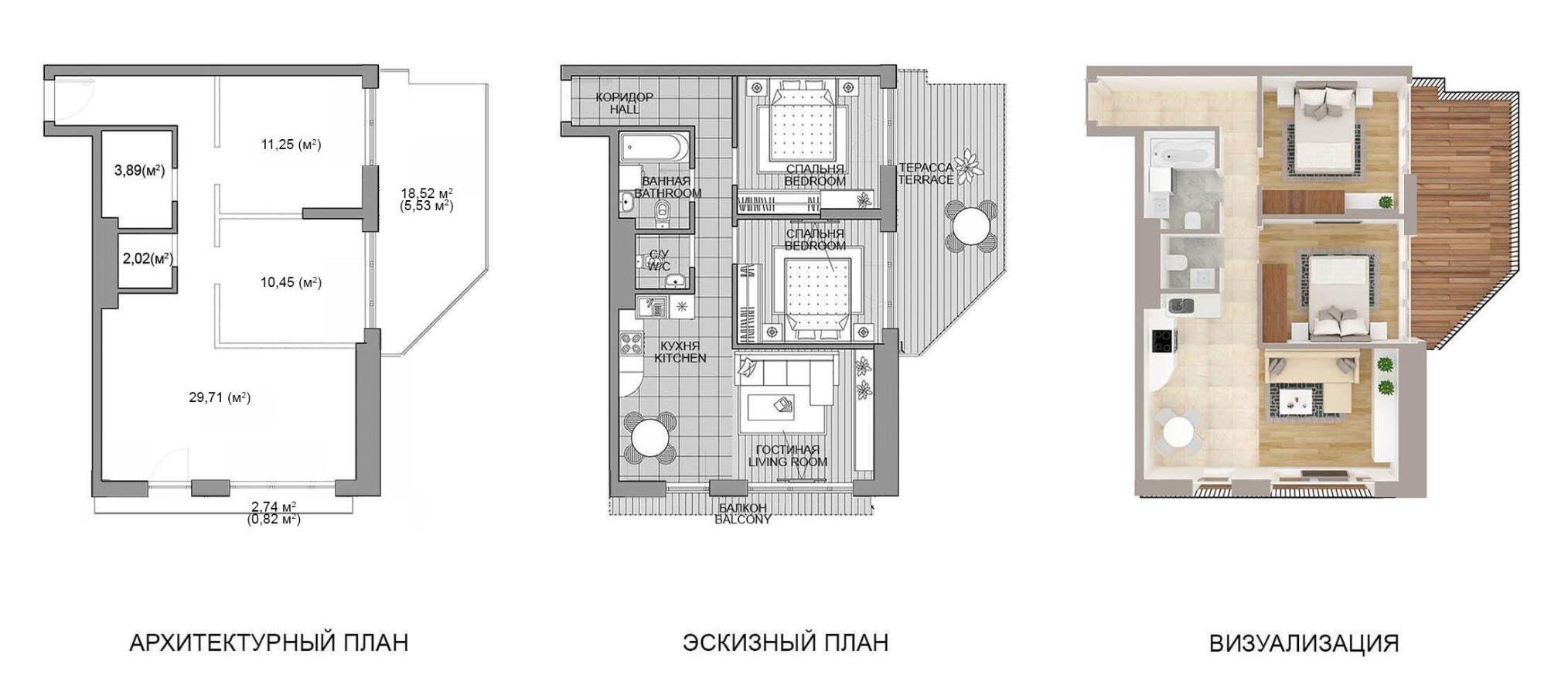 Свободная планировка, которая позволяет рационально использовать пространство.