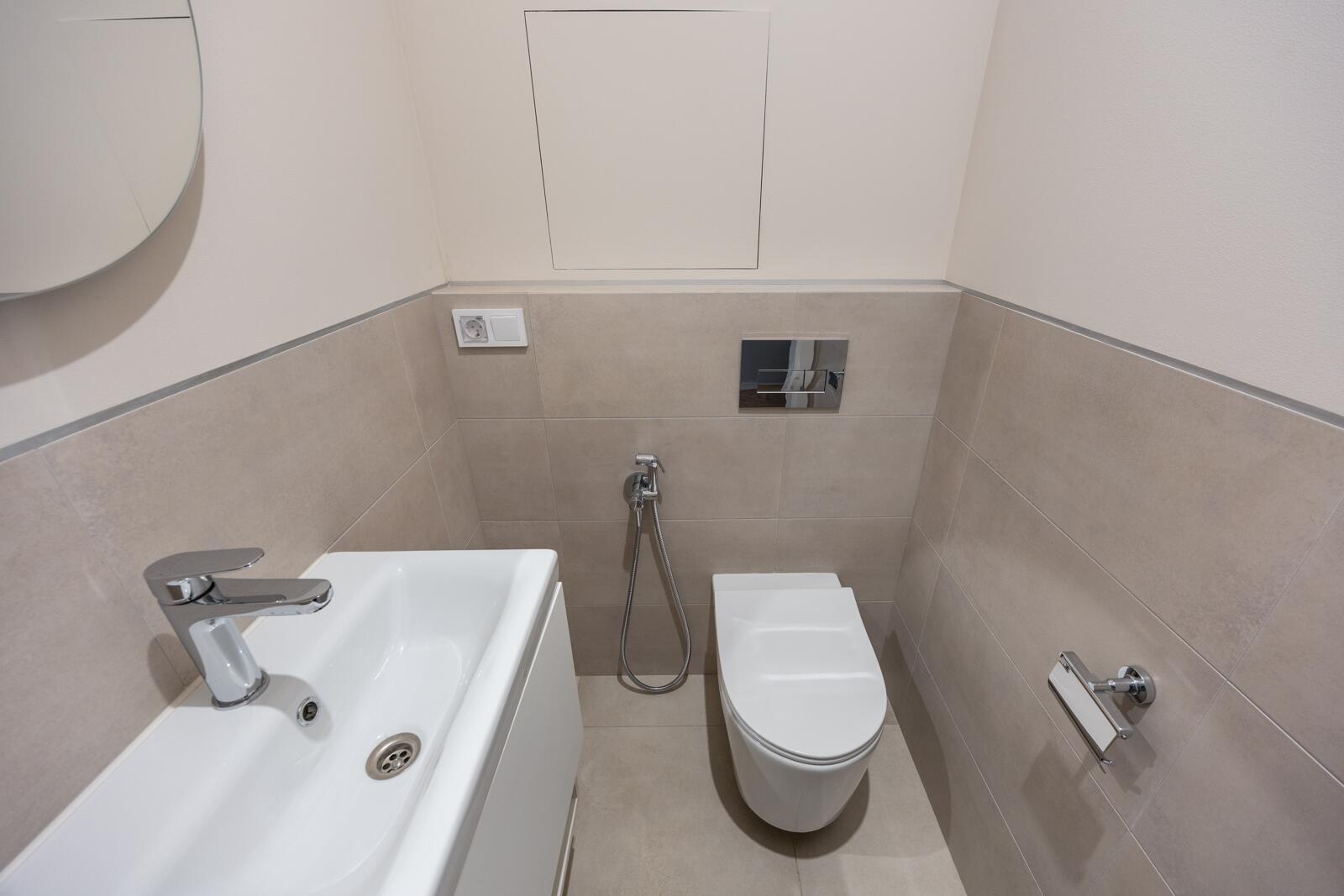 — ванная комната,— душевая комната,— гостевой санузел с гигиеническим душем.Все полностью оборудованы мебелью и качественной сантехникой.