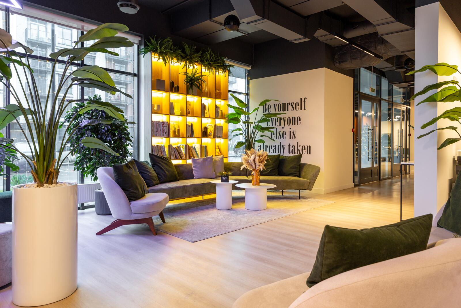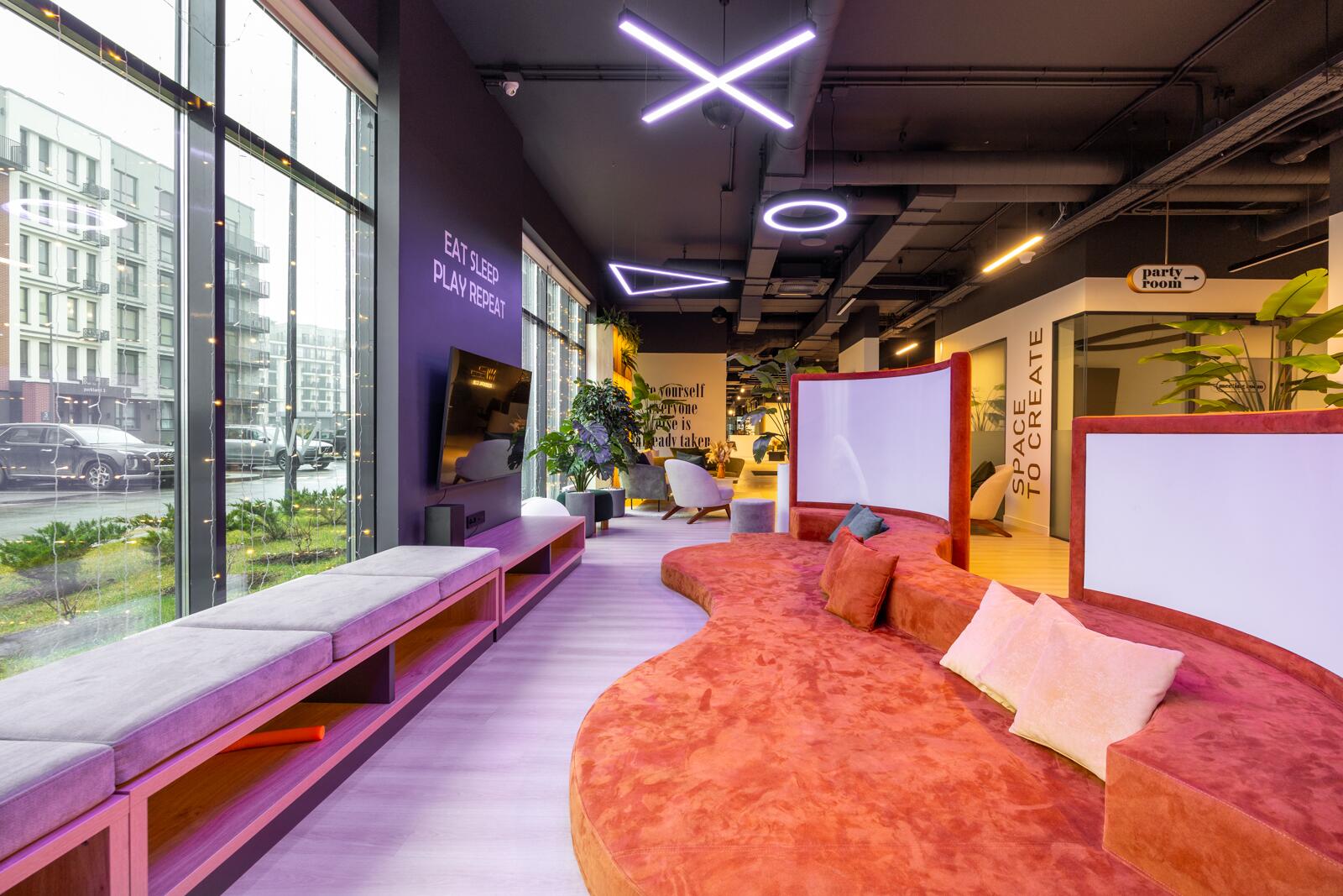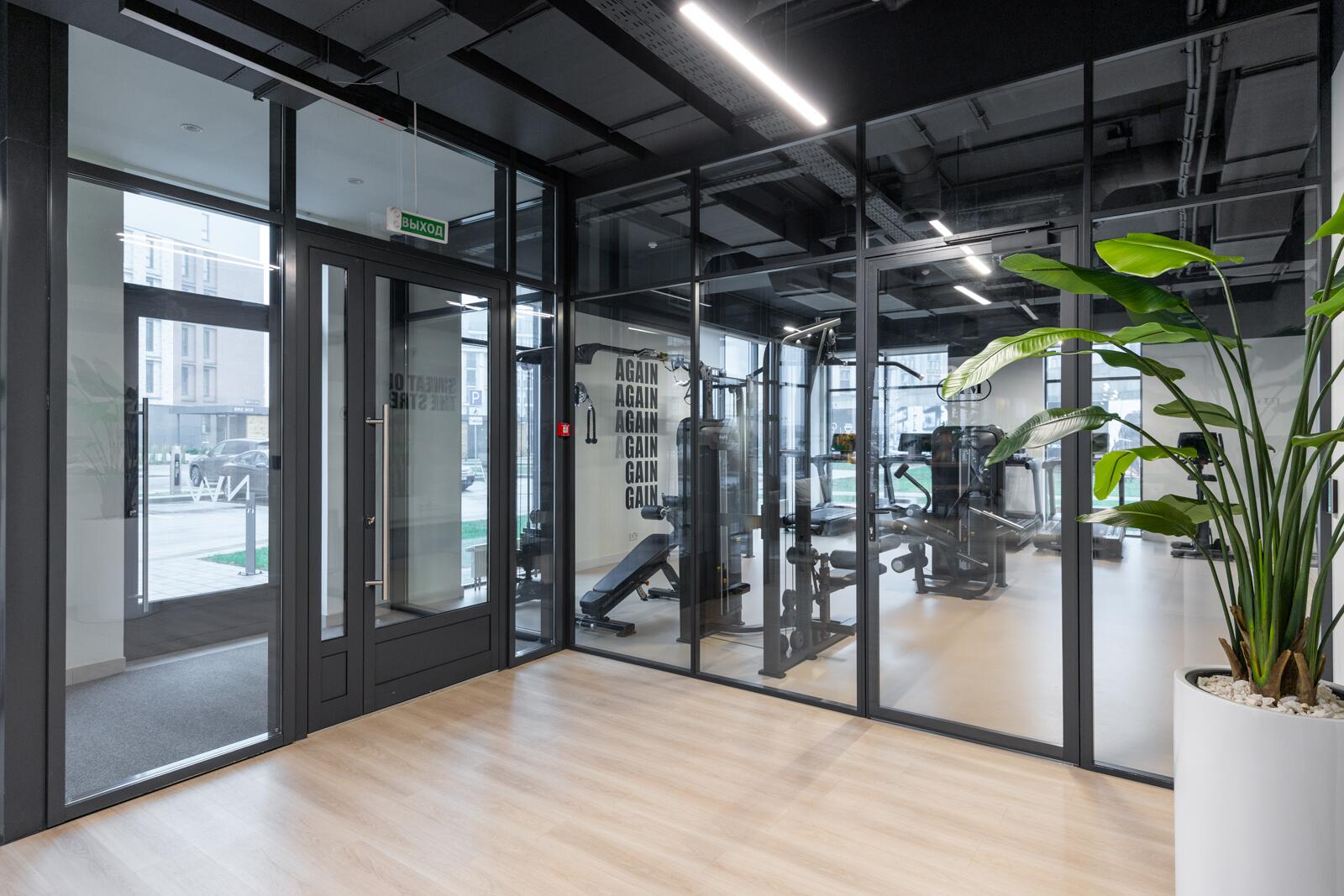 Более 800 м2 приватных помещений в доме:тренажёрный зал • сауна • кинотеатр • бильярд • переговорная • коворкинг • кафе • лаунж-холл • детские и игровые зоны.