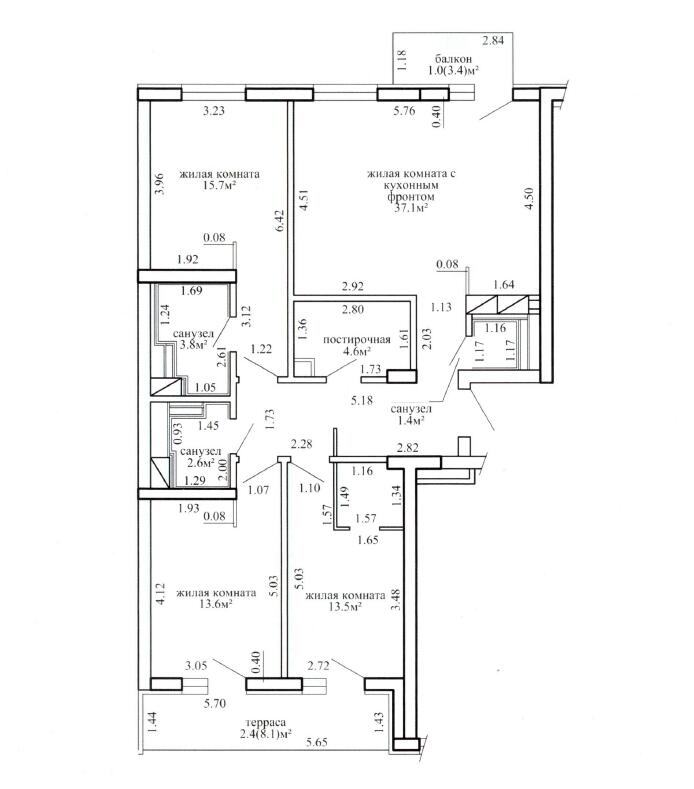 обеденной зоны, зоны отдыха с диваном, домашнего мини-кабинета или барной стойки.Можно легко зонировать: светом, мебелью или декоративными панелями. Три изолированные спальни (15,7 / 13,6 / 13,5 м2)