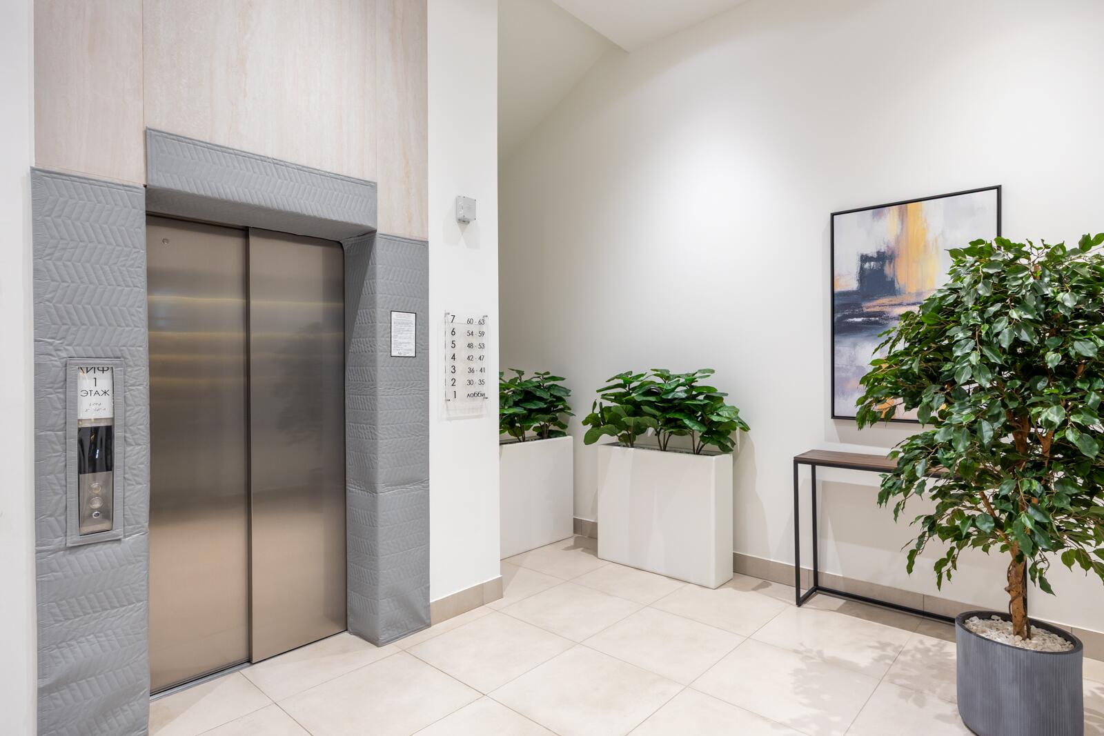 Закрытый двор без машин. Современные лобби и сквозные подъезды. Только 4 квартиры на этаже — высокая приватность. Видеонаблюдение, Face ID, видеодомофоны. Residental Club прямо в доме. Что делает эту квартиру особенной?