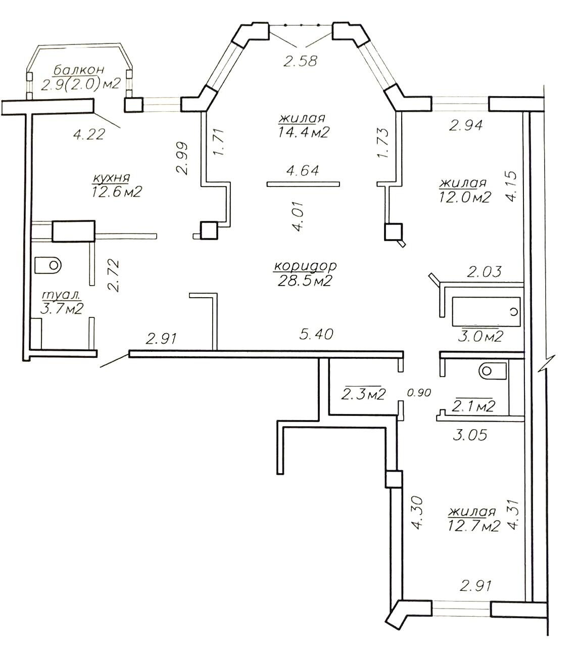 Удобства: 2 санузла и отдельная кладовая.