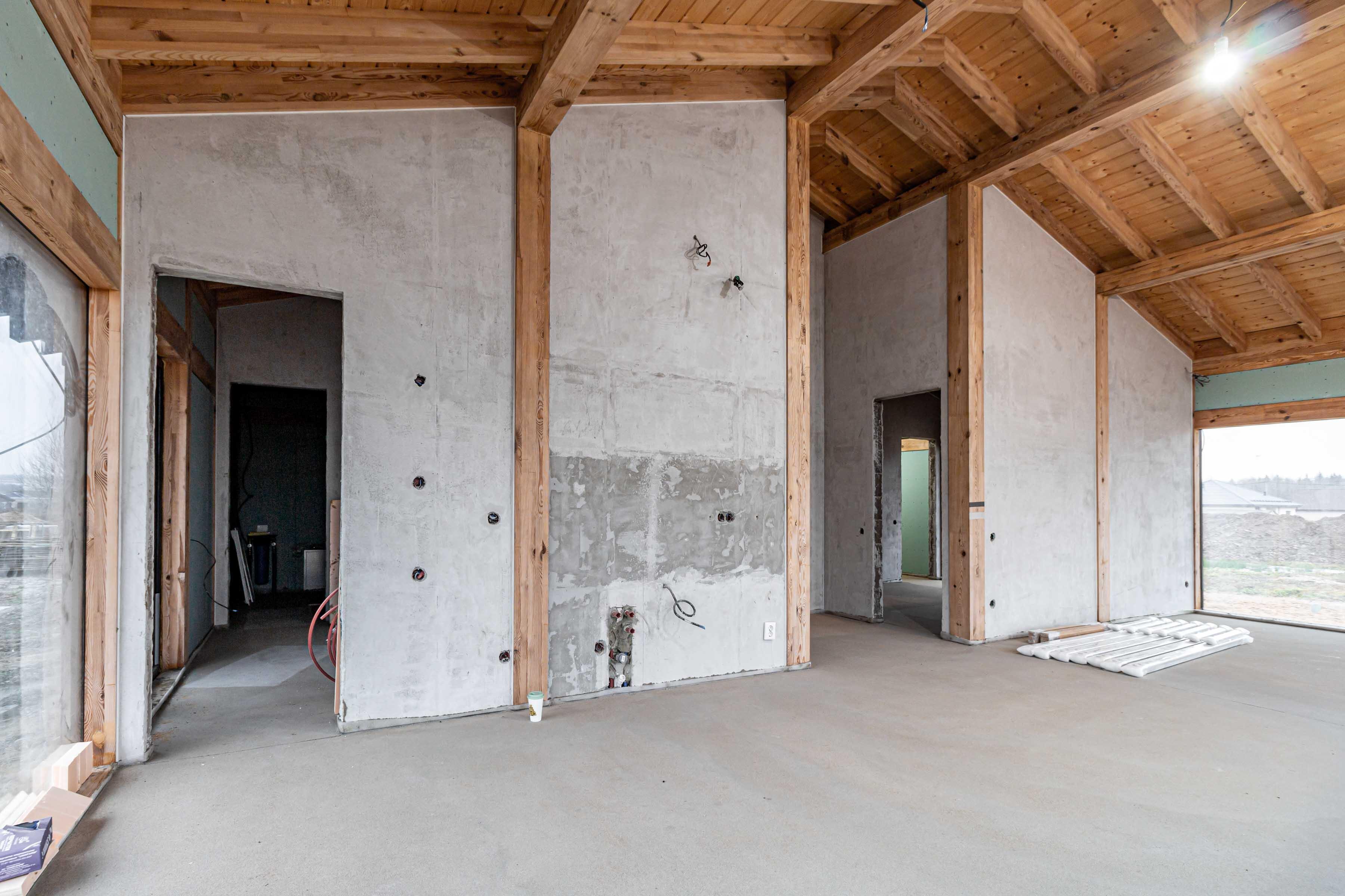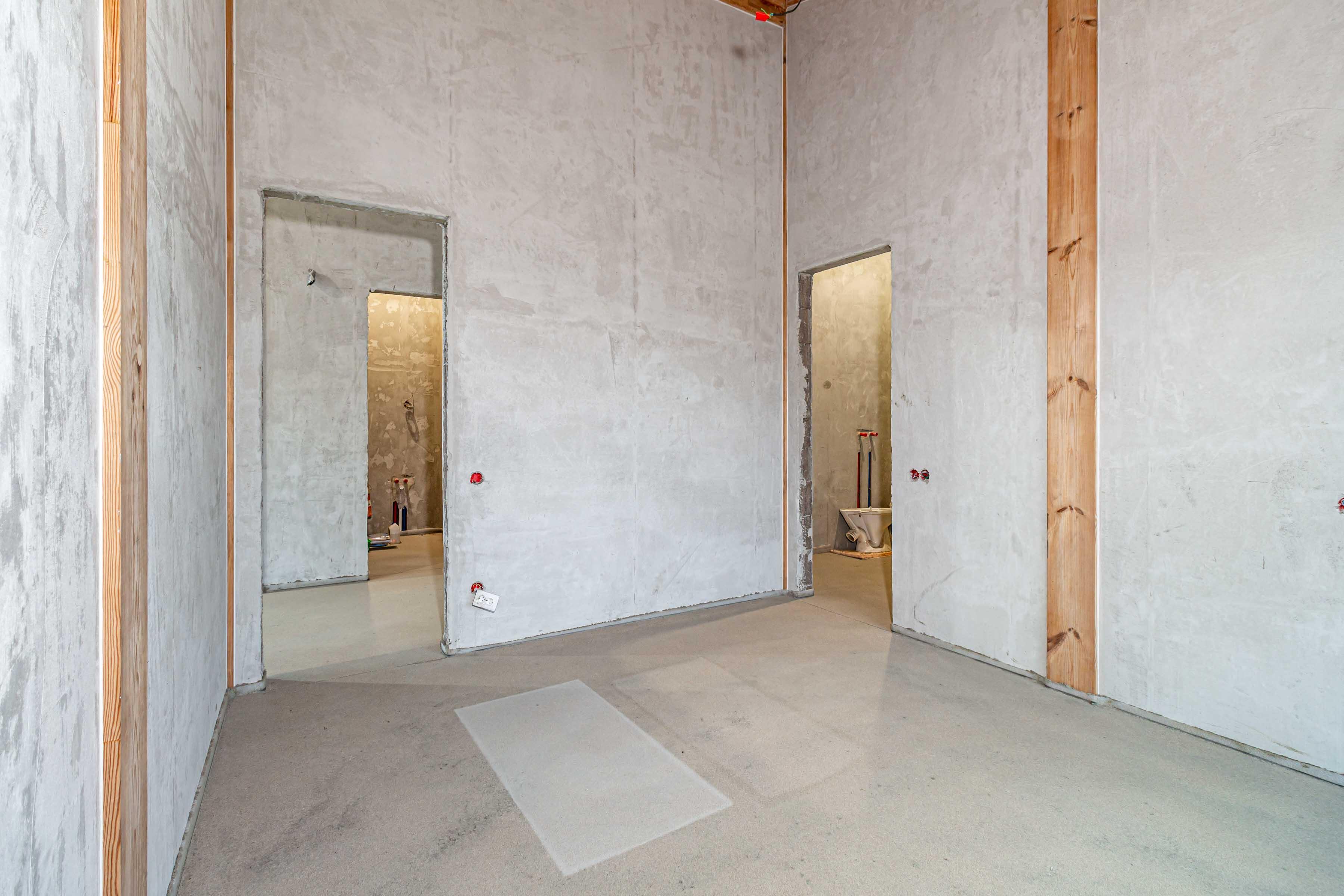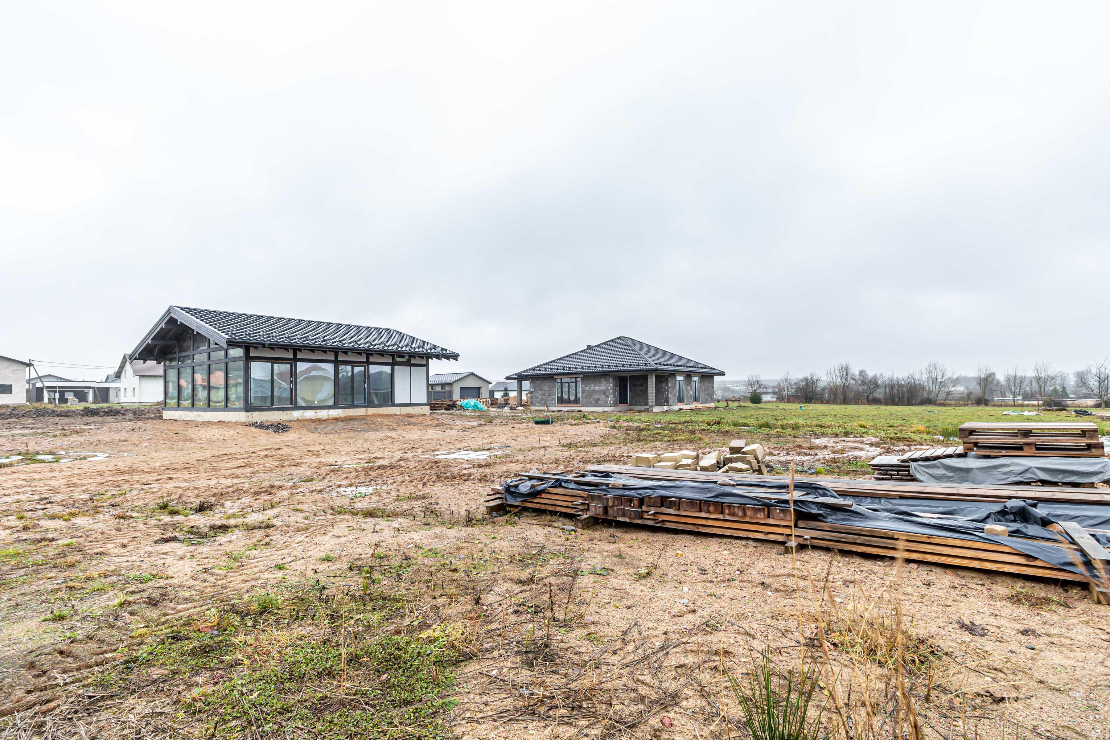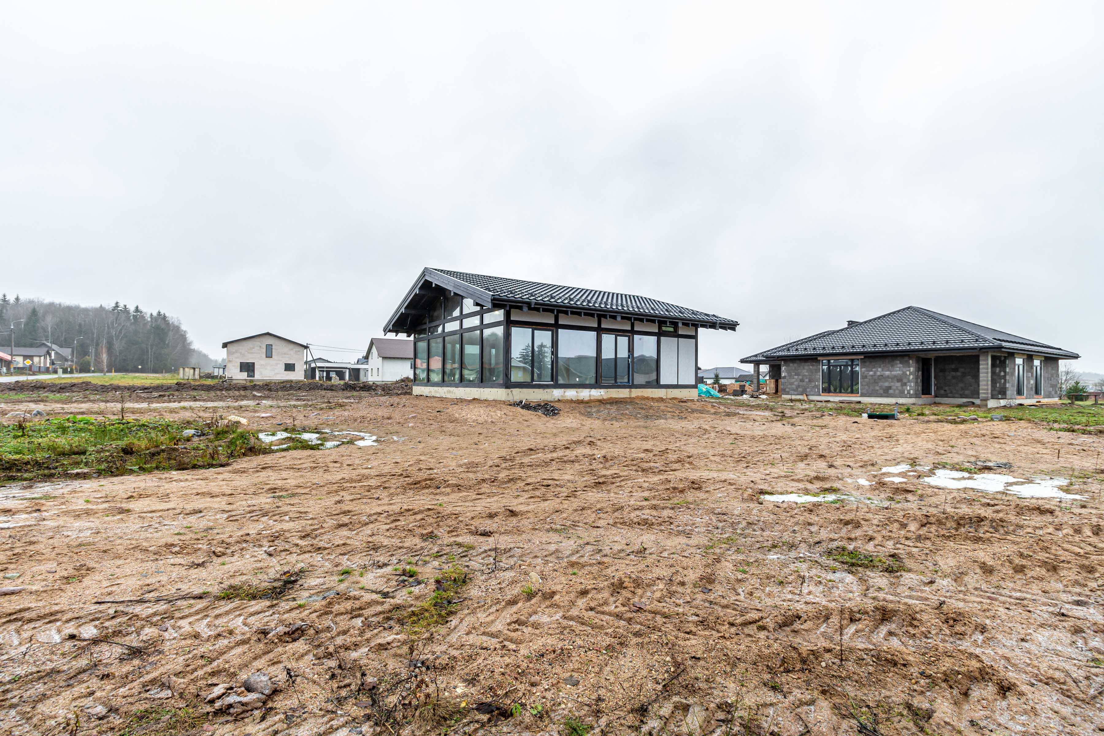 Участок площадью 15,59 соток находится в частной собственности и был приобретен на аукционе. В 2025 году на участке был построен дом под чистовую отделку. Фундамент - свайно-ленточный с монолитной плитой, теплый водяной пол. Кровля выполнена из металлочерепицы. Коммуникации включают электричество (25 кВт), воду из скважины, автономную канализацию, газ по улице (планировалось электроотопление). Асфальтированная дорога ведет к участку.