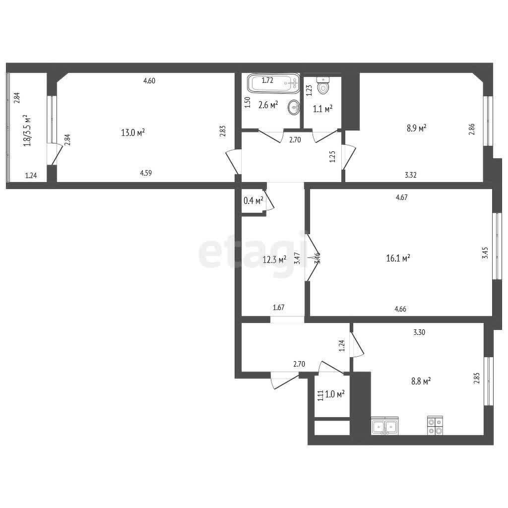 Идеальное предложение для тех, кто ценит комфорт и удобство! На 9-м этаже 12-этажного дома расположена просторная 3-комнатная квартира (66 м2 по СНБ)