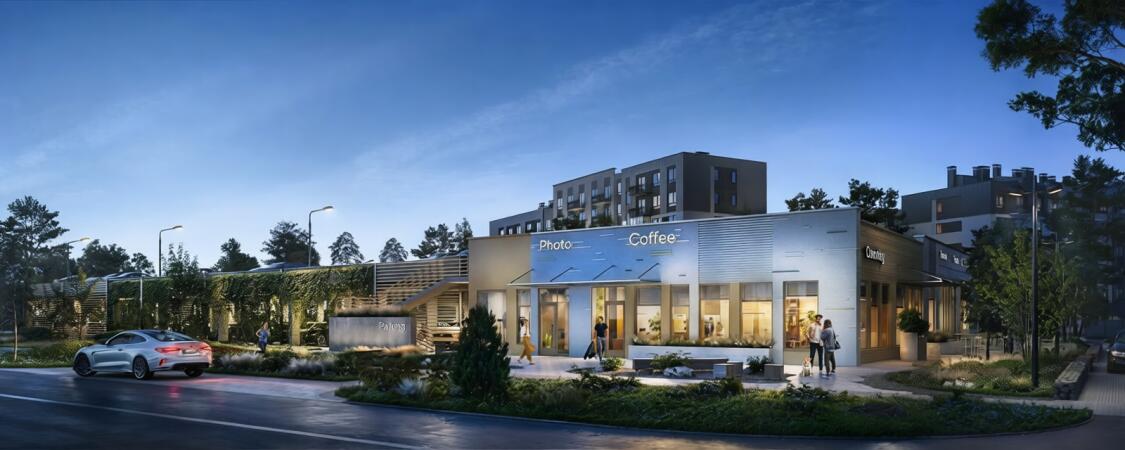 лесной пляж магазины, кафе, рестораны кофейни, спортзал, аптека детский сад (2025 г.) школа (2028 г.) охраняемый паркинг Живописные виды и спокойная атмосфера - идеальный баланс города и природы.
