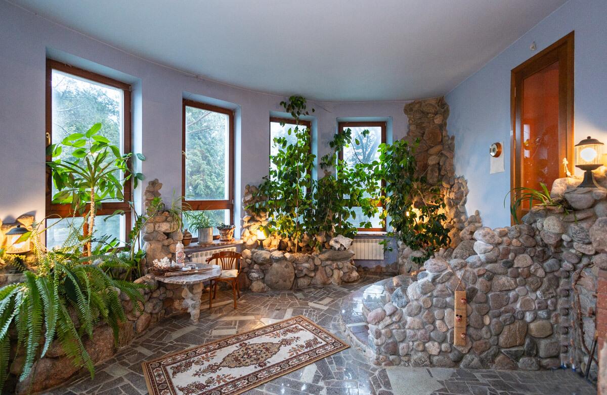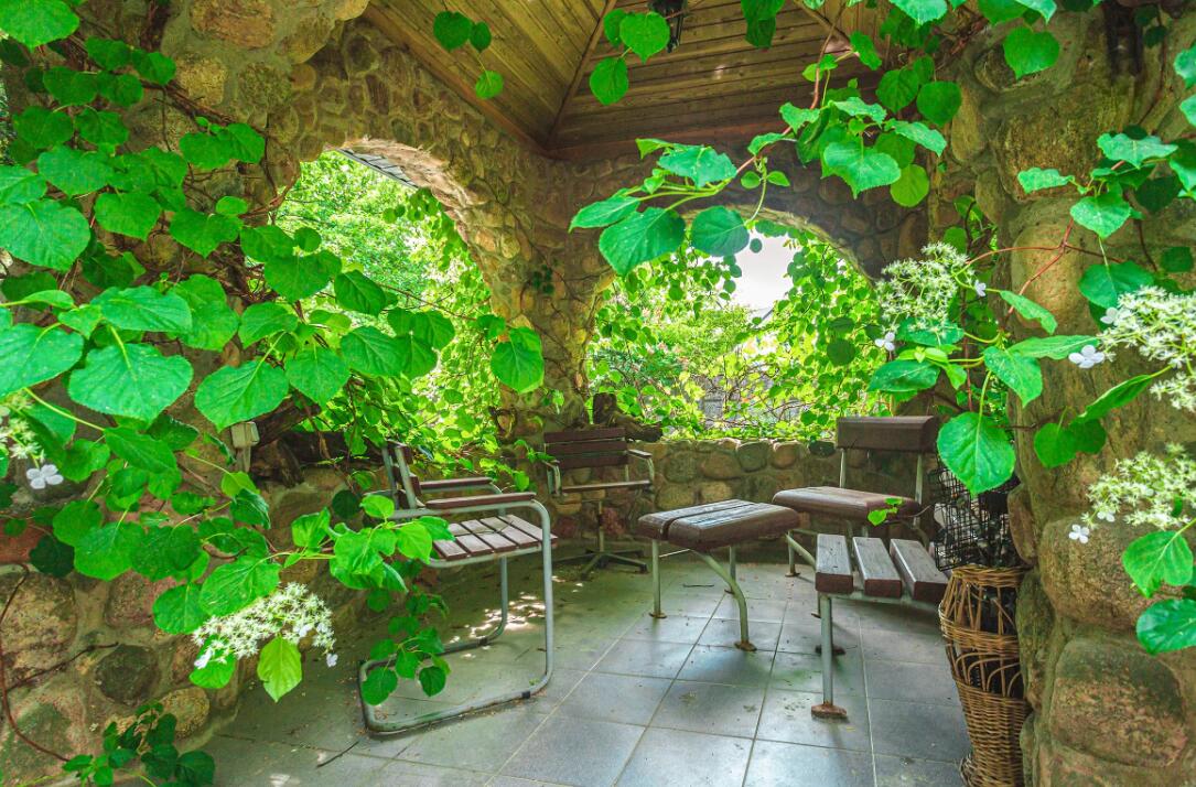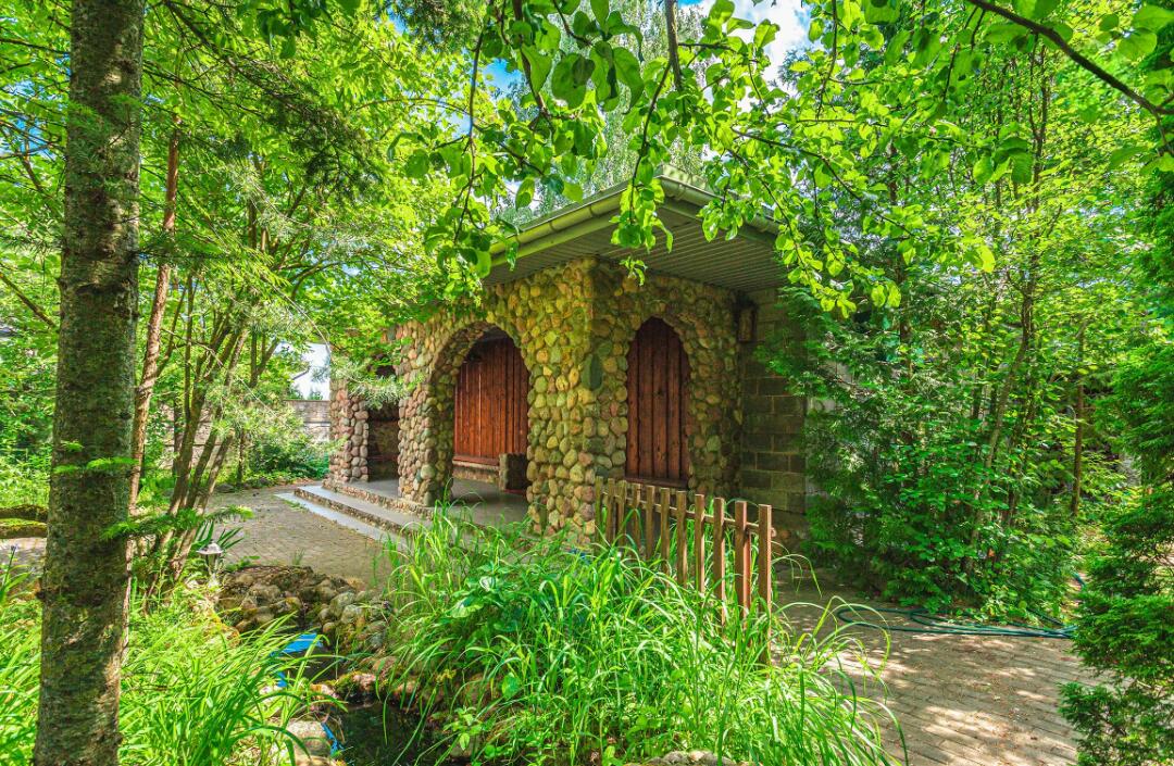 В Тарасово эту усадьбу называют каменной сказкой. Мощная ограда, массивный фундамент дома, беседки, бордюры и даже пруд выложены натуральным бутовым камнем.