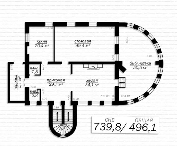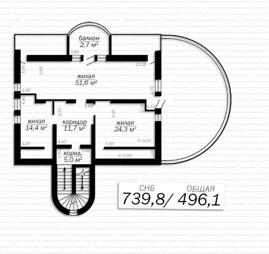 Дом с мансардным и цокольным уровнем, площадью, кв. метров: по СНБ – 739,8/ общая – 496,1/ жилая – 310,4/ кухня – 20,4.