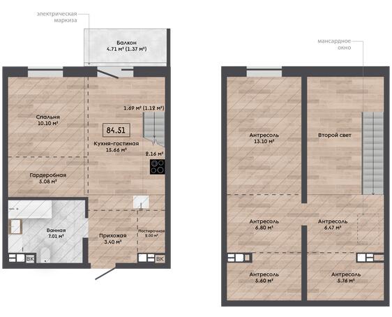 Высокие потолки и большие окна Лучшее решение проблемы недостатка естественного освещения: в мансардных квартирах много света в любое время года; Большой объем помещения — это обилие воздуха, а значит, в буквальном смысле здоровая атмосфера у вас дома;