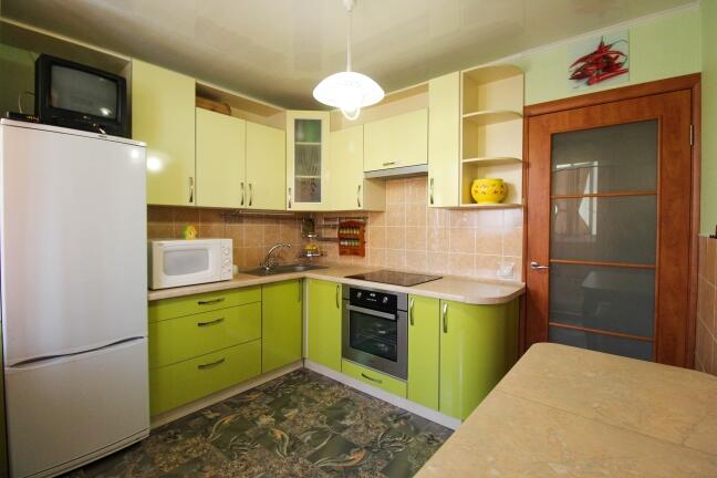 - Современная кухня, оборудованная необходимой техникой: холодильник, духовой шкаф, вытяжка, варочная поверхность;