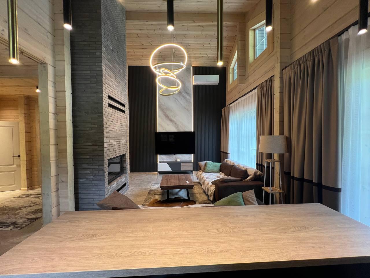 • Основной дом 149 кв.м. (клееный брус 200*260, утепленная монолитная плита): 3 спальни, 2 санузла, каминный зал с обеденной зоной, подсобные помещения, веранда с мебелью.