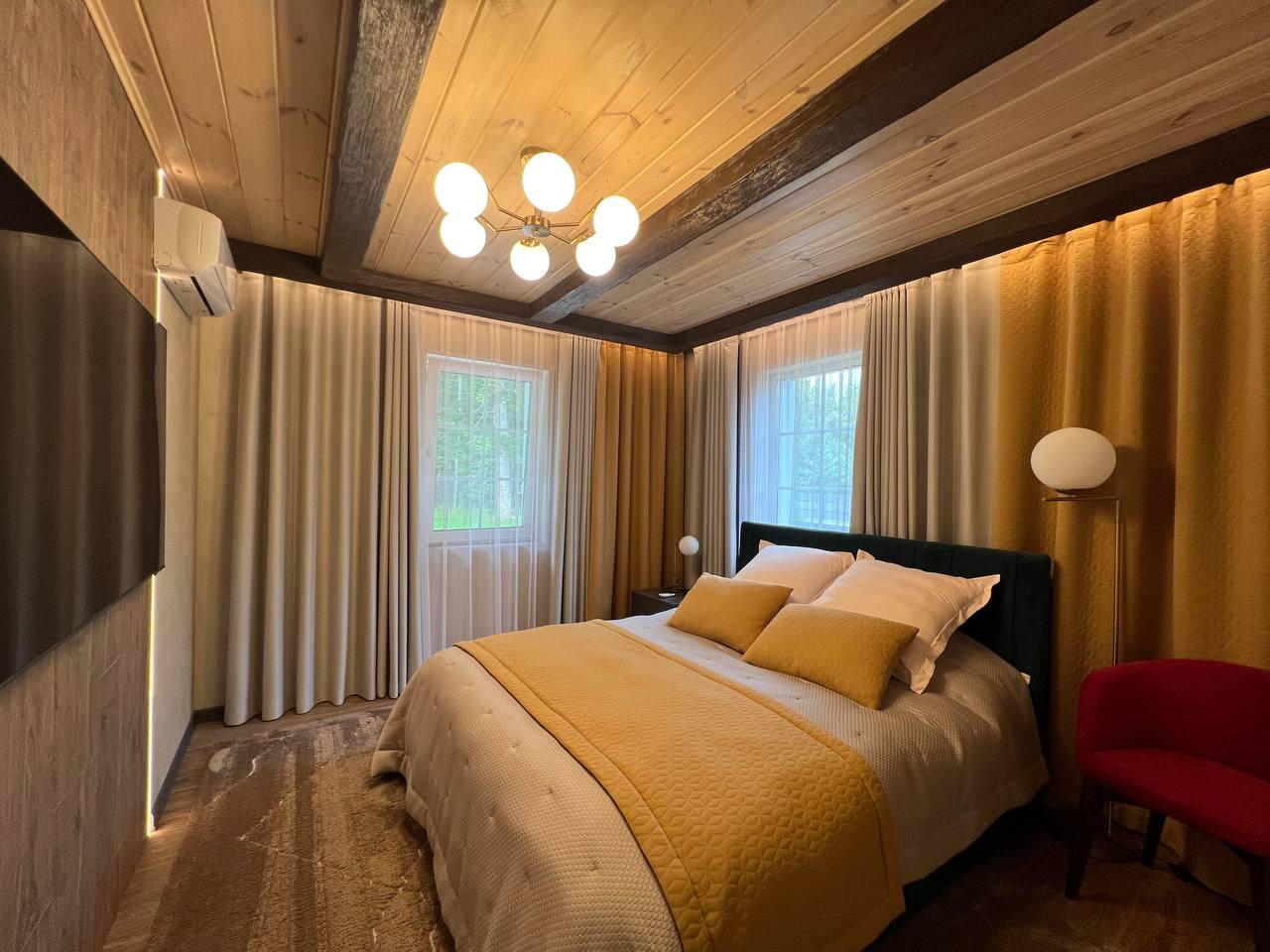 • Гостевой дом 87,5 кв.м. (утепленный полубрус, утепленная монолитная плита): 1 спальня, каминный зал, большой совмещенный санузел, обеденная зона, подсобное помещение, веранда с мебелью.