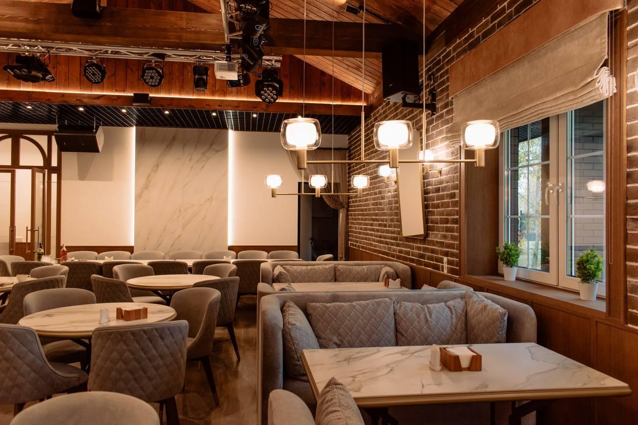 • Ресторан (блок 400 мм, утепление 100 мм, клинкерный кирпич с утеплением 50 мм, утепленная монолитная плита): банкетный зал на 60 посадочных мест, кухня, сервировочная, 3 санузла, постирочная, комната персонала, гардероб, гараж.