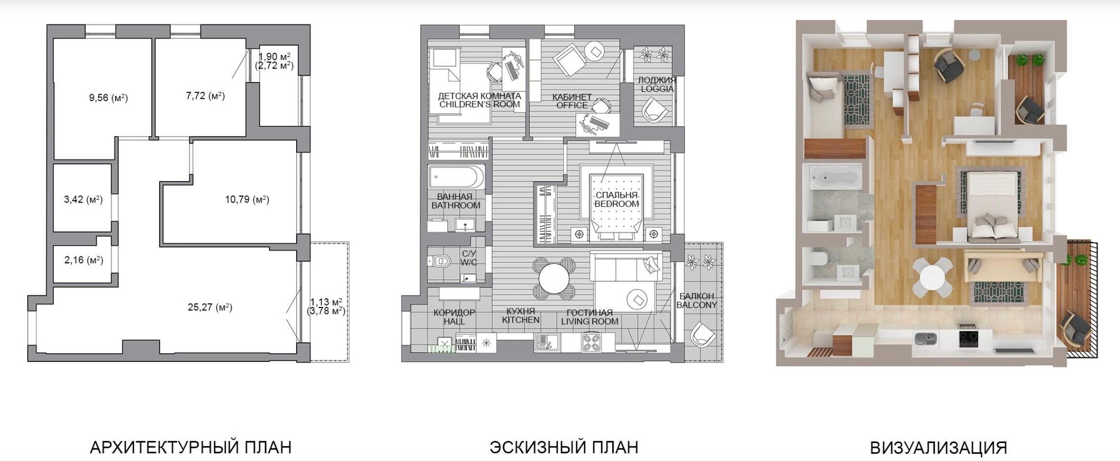 одну просторную комнату, две функциональные, или полноценную трёхкомнатную квартиру. Большинство квартир оснащены панорамными окнами от пола до потолка, обеспечивающими максимум естественного освещения, и визуально расширяют пространство. На некоторых этажах - варианты с классическим остеклением и подоконной частью.