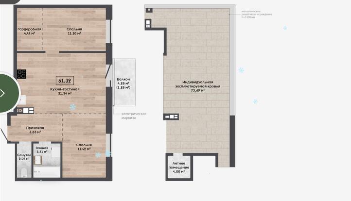 Квартира с террасой на крыше.