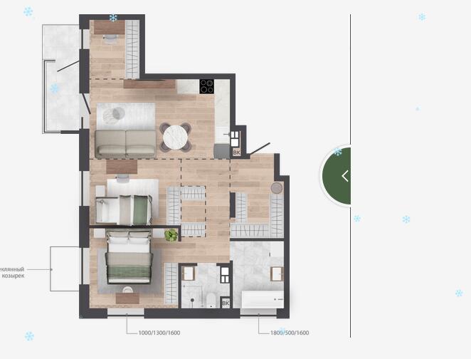 Продуманные планировки: Уникальные квартиры с личными террасами и участками на первом этаже, а также квартиры с мастер-спальнями, гардеробными и кабинетом. Кроме того, для каждой квартиры предусмотрена кладовая в техническом подполье, а для некоторых — кладовые на этажах.