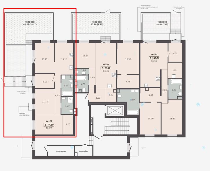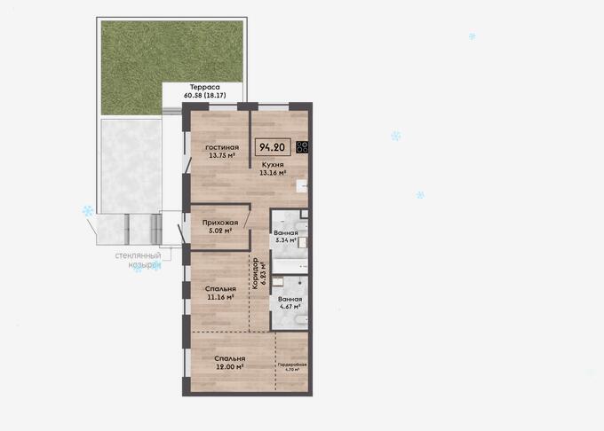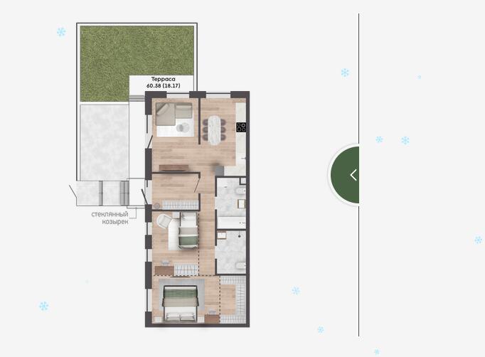 Квартира с террасой - 60.58м2.