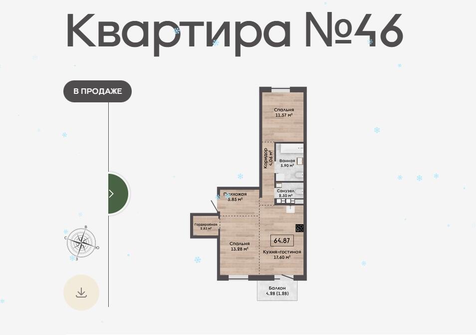 Площадь64.87 м2