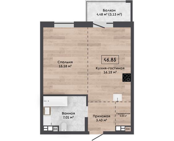 Общая площадь 46.85 м²